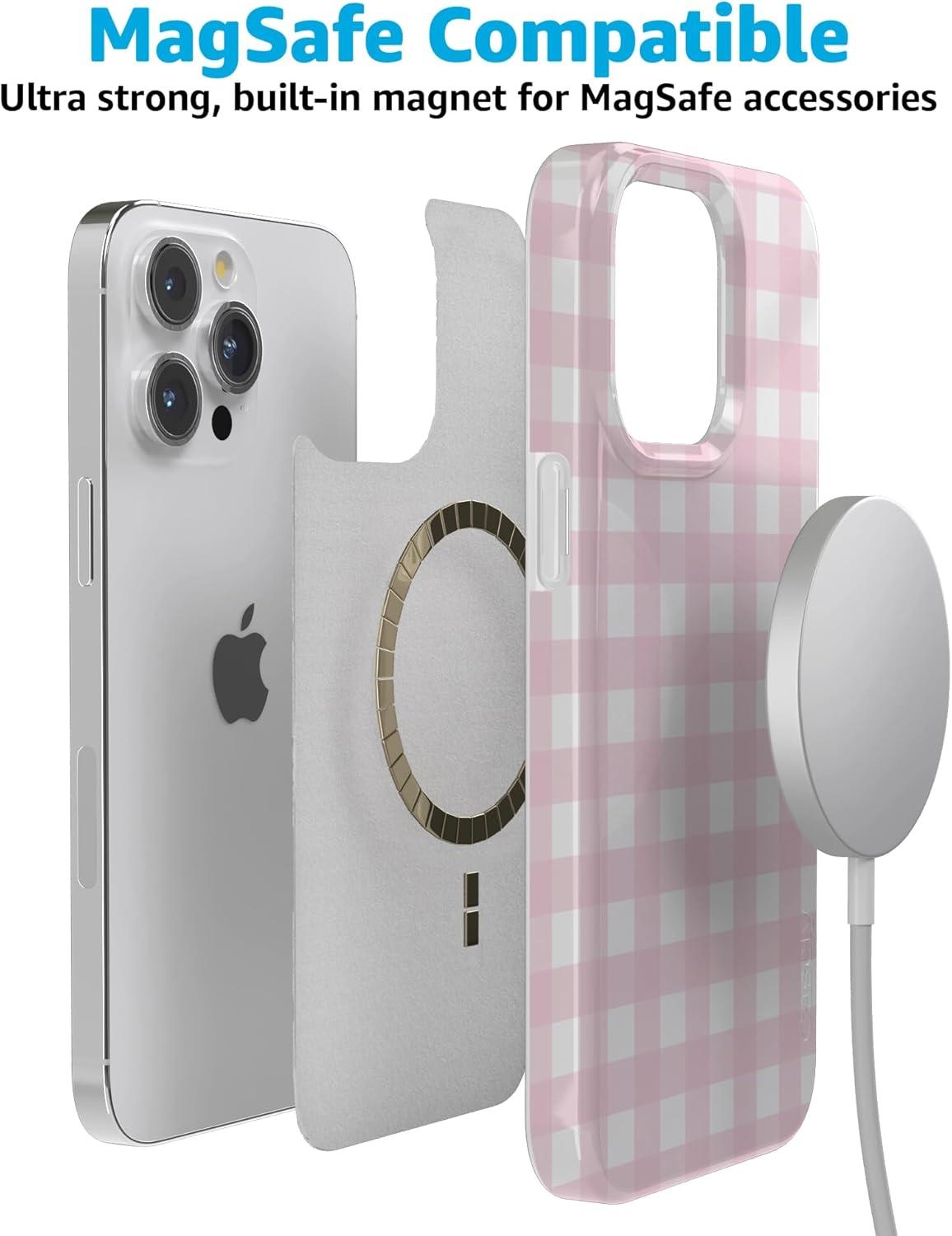 Casely iPhone 15 Pro Max Case | Monet’s Water Lilies | The Met Museum | Compatible with MagSafe | Classic Ultra Slim Design(Pink Plaid | Sunday Best)