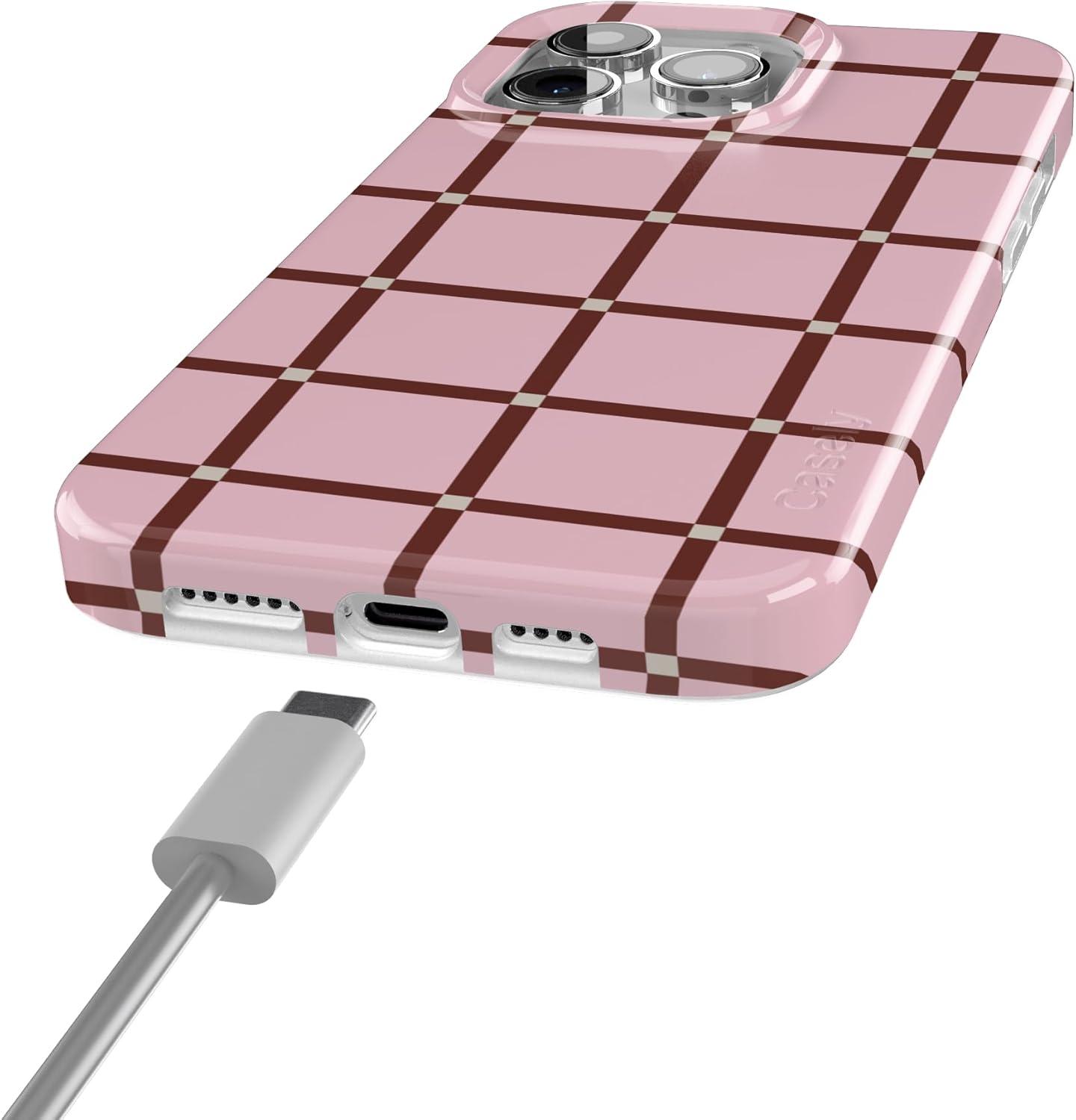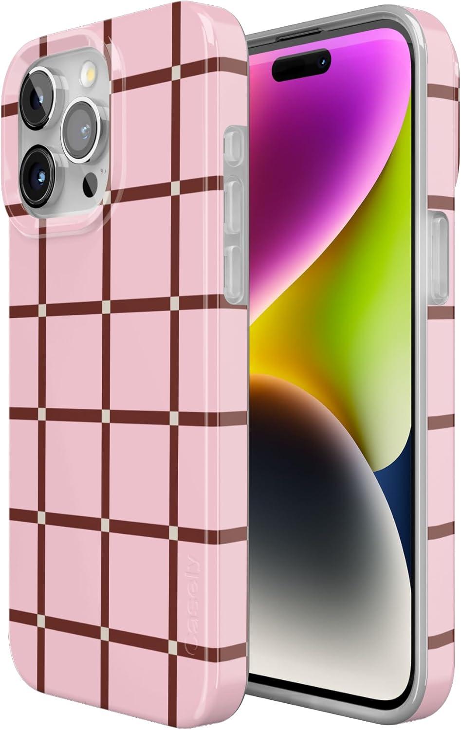 Casely iPhone 15 Pro Max Case | Monet’s Water Lilies | The Met Museum | Compatible with MagSafe | Classic Ultra Slim Design(Uptown Gridlock | Pink Checkerboard)