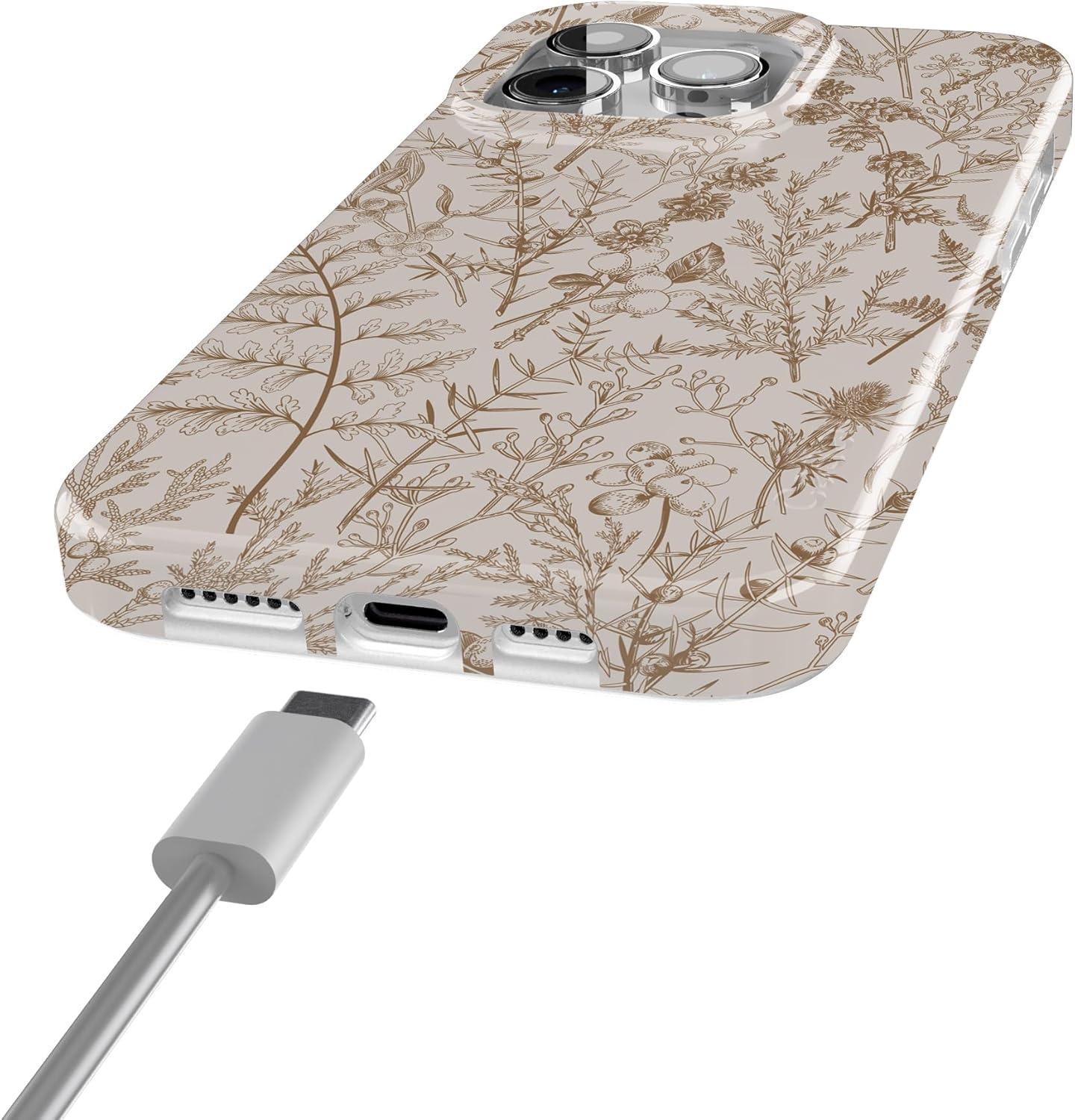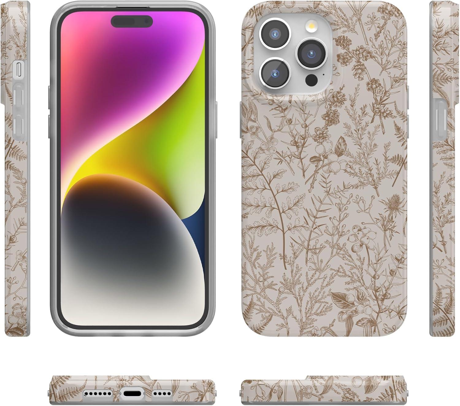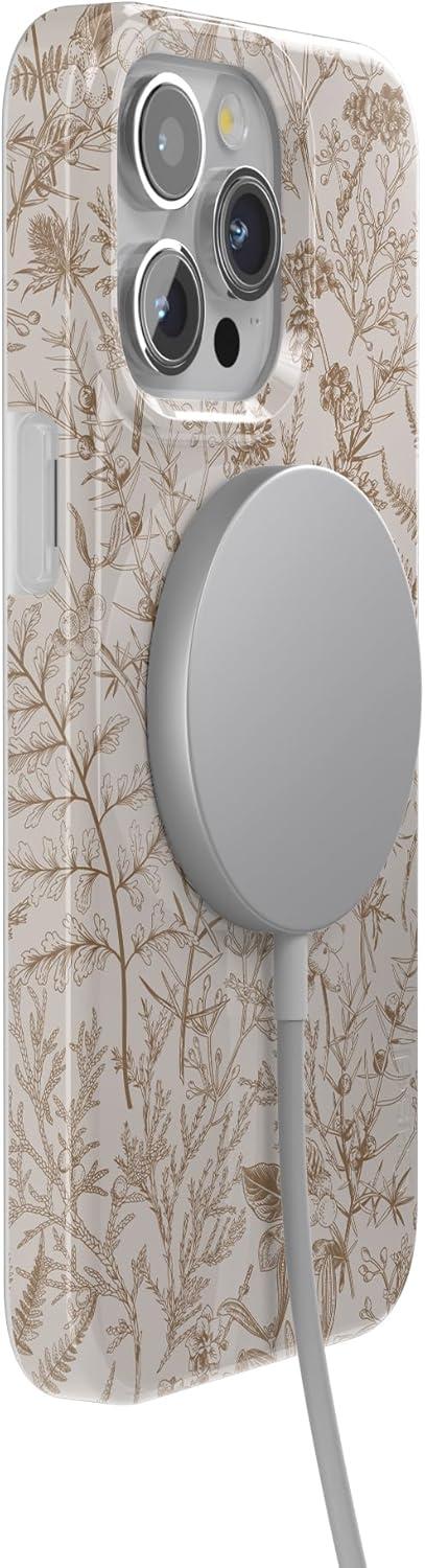 Casely iPhone 15 Pro Max Case | Moody Monochrome | Bordeaux Rose | Compatible with MagSafe | Classic Ultra Thin Design(Beige Garden | Neutral Floral)