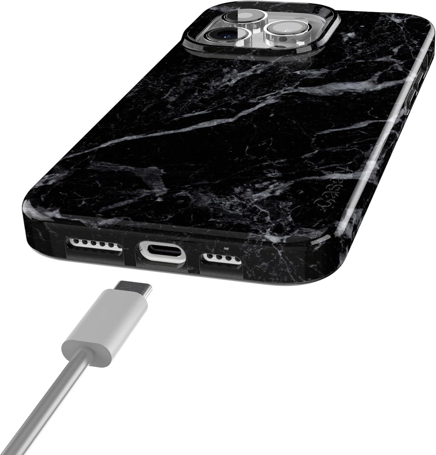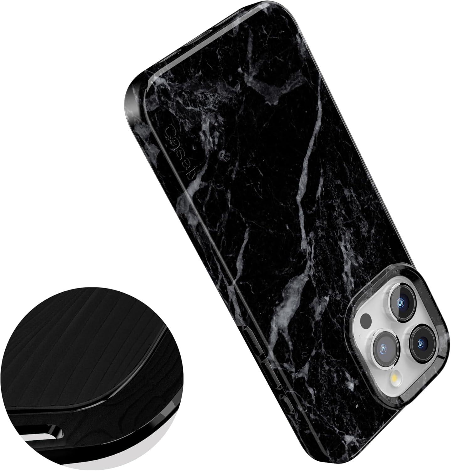 Casely iPhone 15 Pro Max Case | Moody Monochrome | Bordeaux Rose | Compatible with MagSafe | Classic Ultra Thin Design(Black Pearl Marble)
