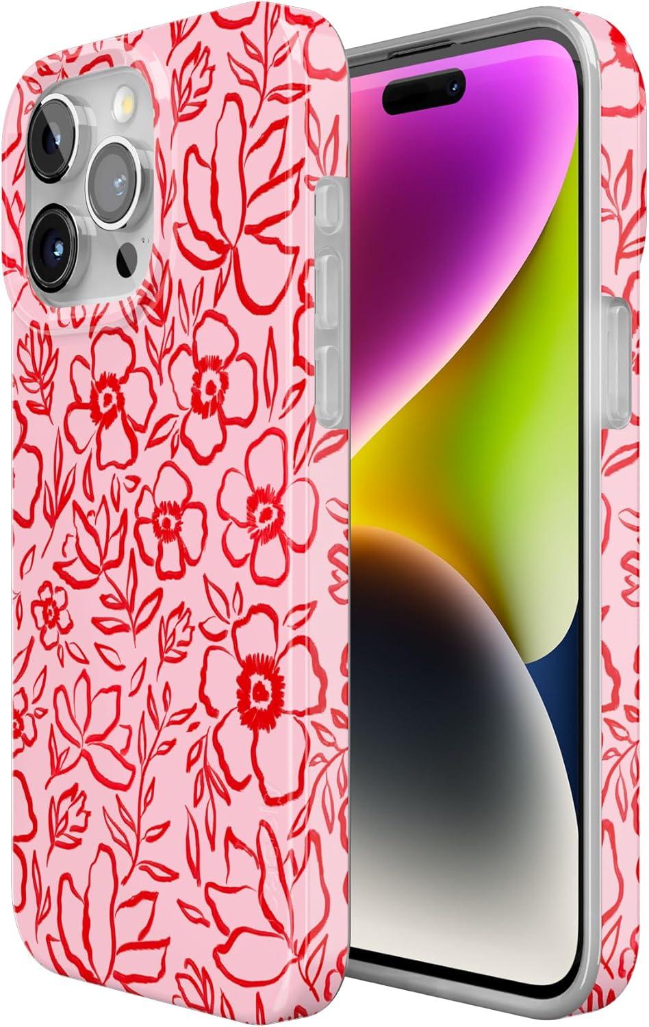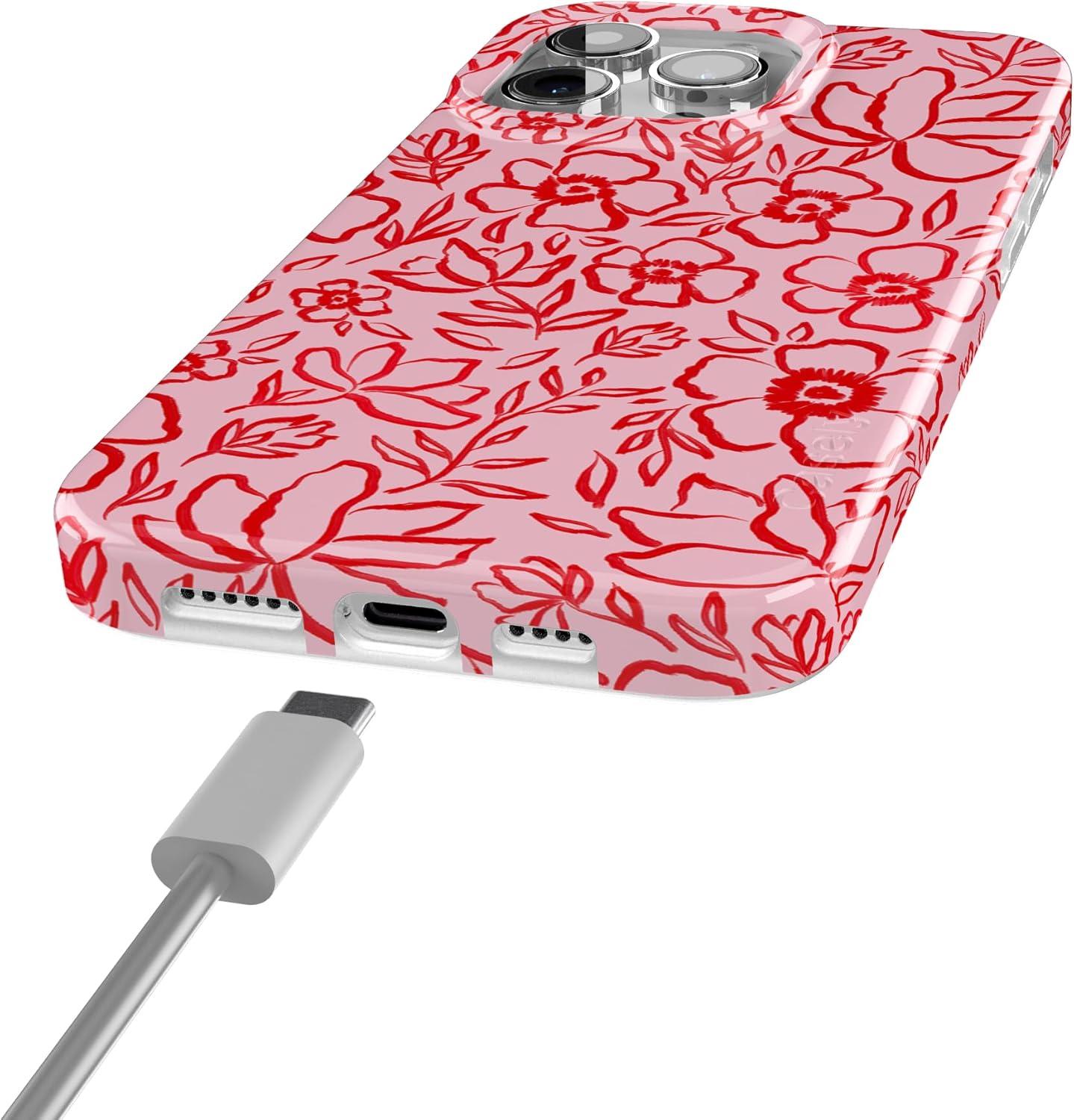 Casely iPhone 15 Pro Max Case | Moody Monochrome | Bordeaux Rose | Compatible with MagSafe | Classic Ultra Thin Design(Blush Garden | Floral Doodle)