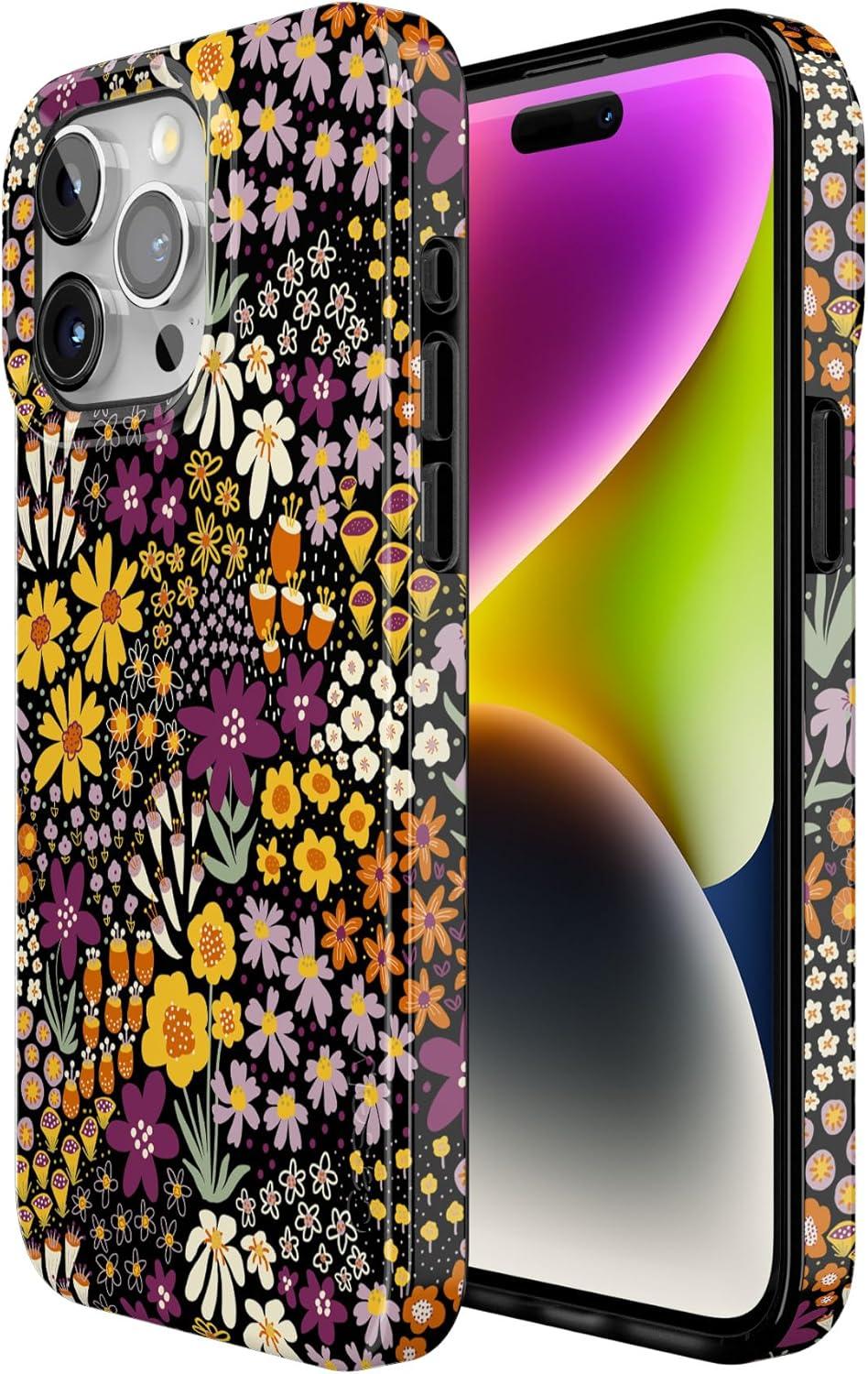 Casely iPhone 15 Pro Max Case | Moody Monochrome | Bordeaux Rose | Compatible with MagSafe | Classic Ultra Thin Design(Falling for You | Plum Floral)