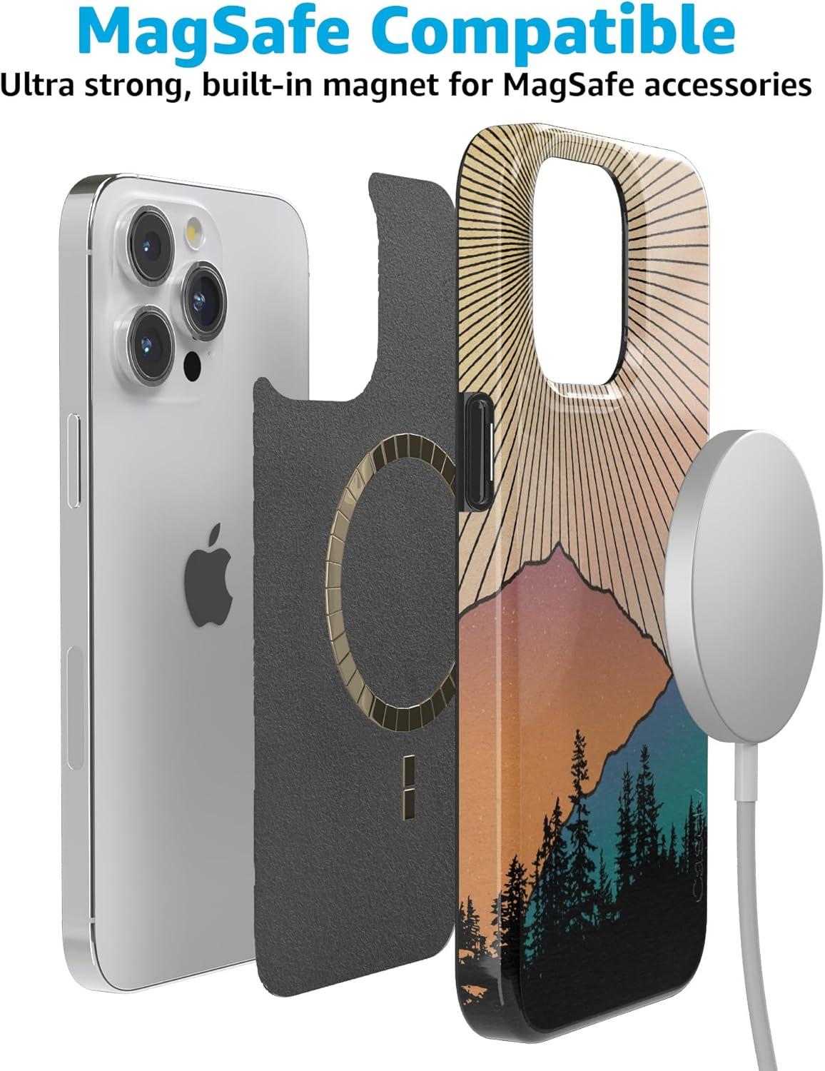Casely iPhone 15 Pro Max Case | Moody Monochrome | Bordeaux Rose | Compatible with MagSafe | Classic Ultra Thin Design(Golden Hour | Mountain Sunset)