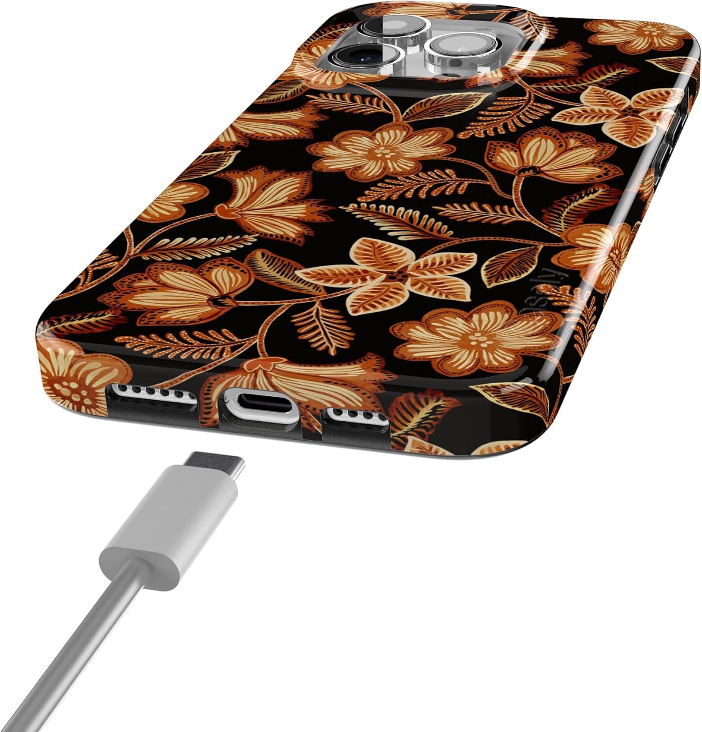 Casely iPhone 15 Pro Max Case | Moody Monochrome | Bordeaux Rose | Compatible with MagSafe | Classic Ultra Thin Design(Maple Flowers | Floral Foliage)