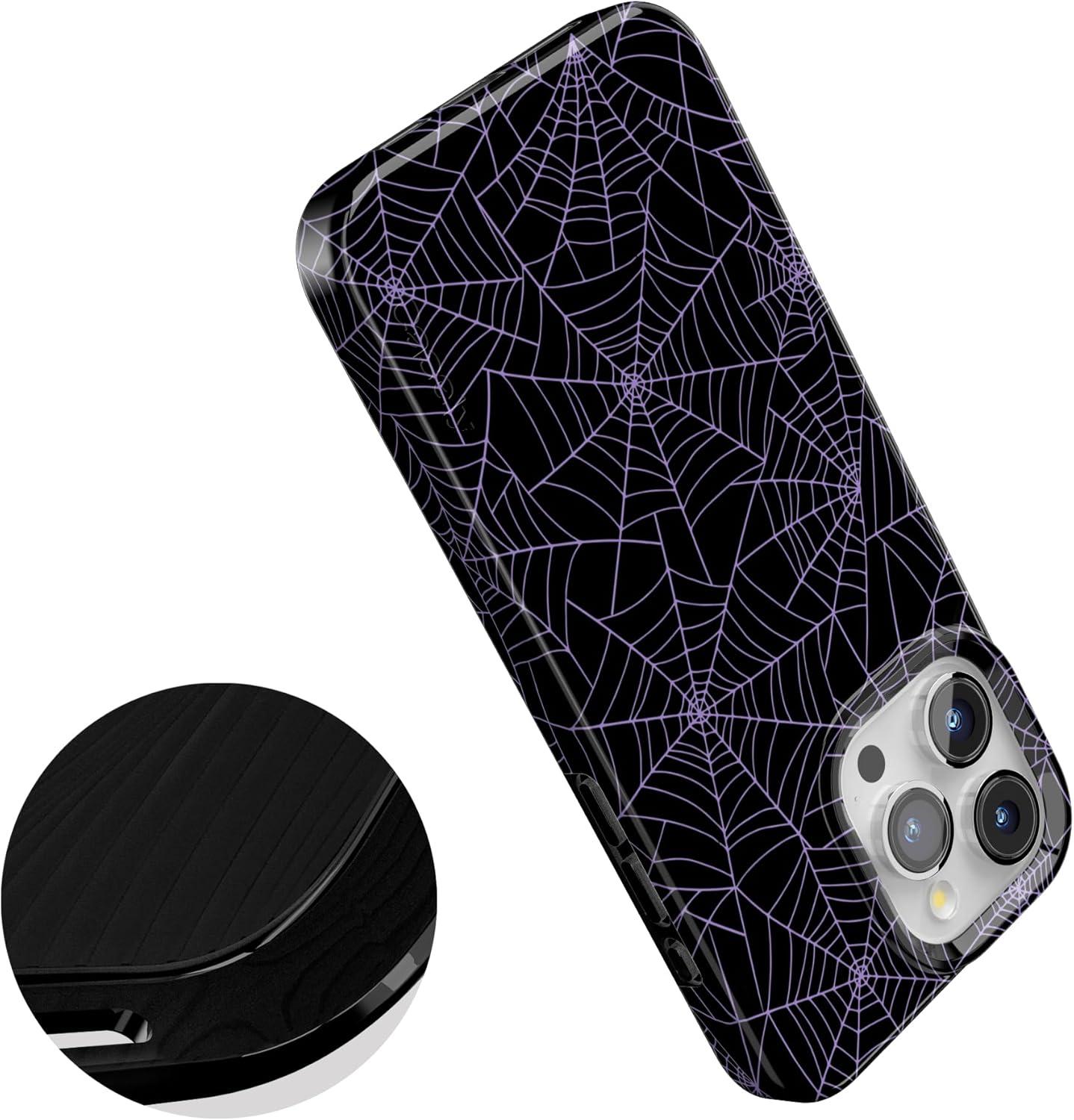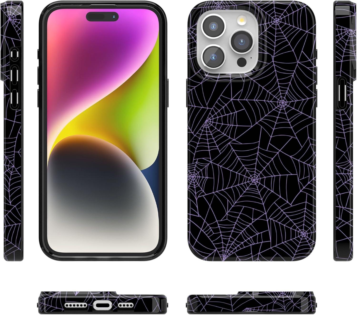 Casely iPhone 15 Pro Max Case | Moody Monochrome | Bordeaux Rose | Compatible with MagSafe | Classic Ultra Thin Design(Midnight Web | Spider Web)