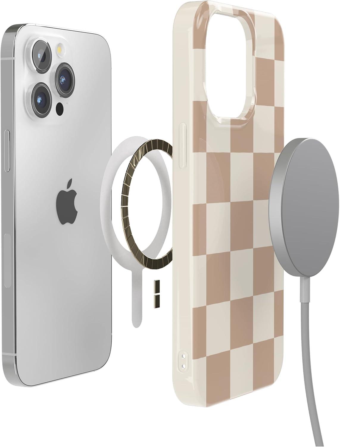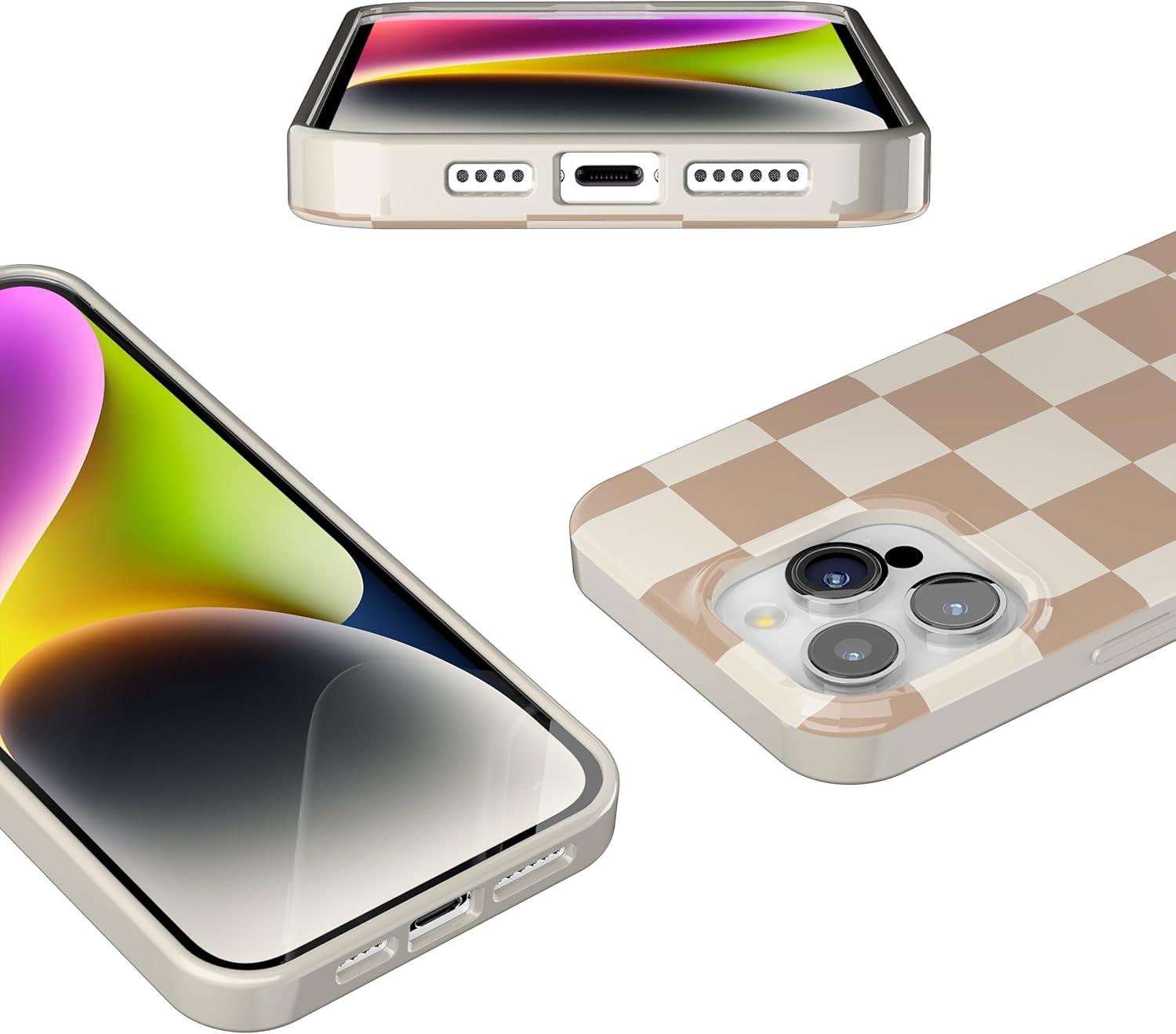 Casely iPhone 15 Pro Max Case | Moody Monochrome | Bordeaux Rose | Compatible with MagSafe | Classic Ultra Thin Design(Neutral Checkerboard | Fit Check)