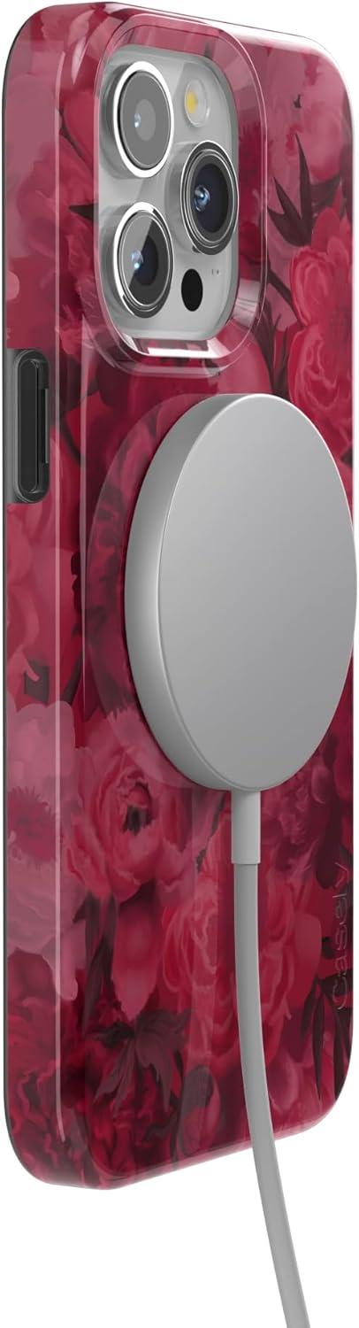 Casely iPhone 15 Pro Max Case | Moody Monochrome | Bordeaux Rose | Compatible with MagSafe | Classic Ultra Thin Design(Romance Novel | Moody Floral)