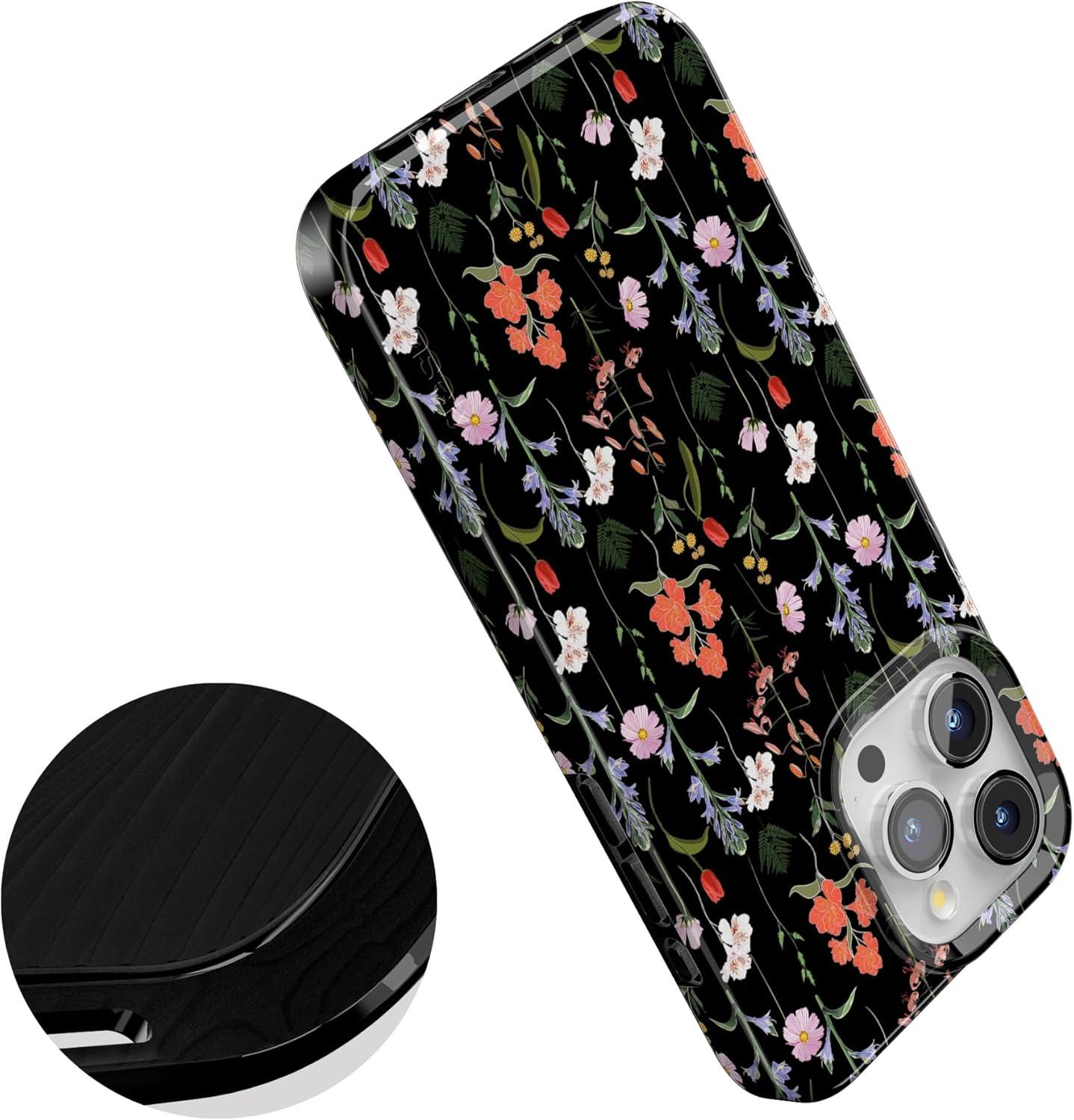 Casely iPhone 15 Pro Max Case | Moody Monochrome | Bordeaux Rose | Compatible with MagSafe | Classic Ultra Thin Design(Secret Garden | Mixed Floral)