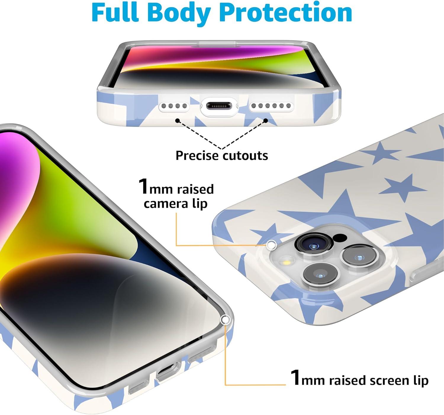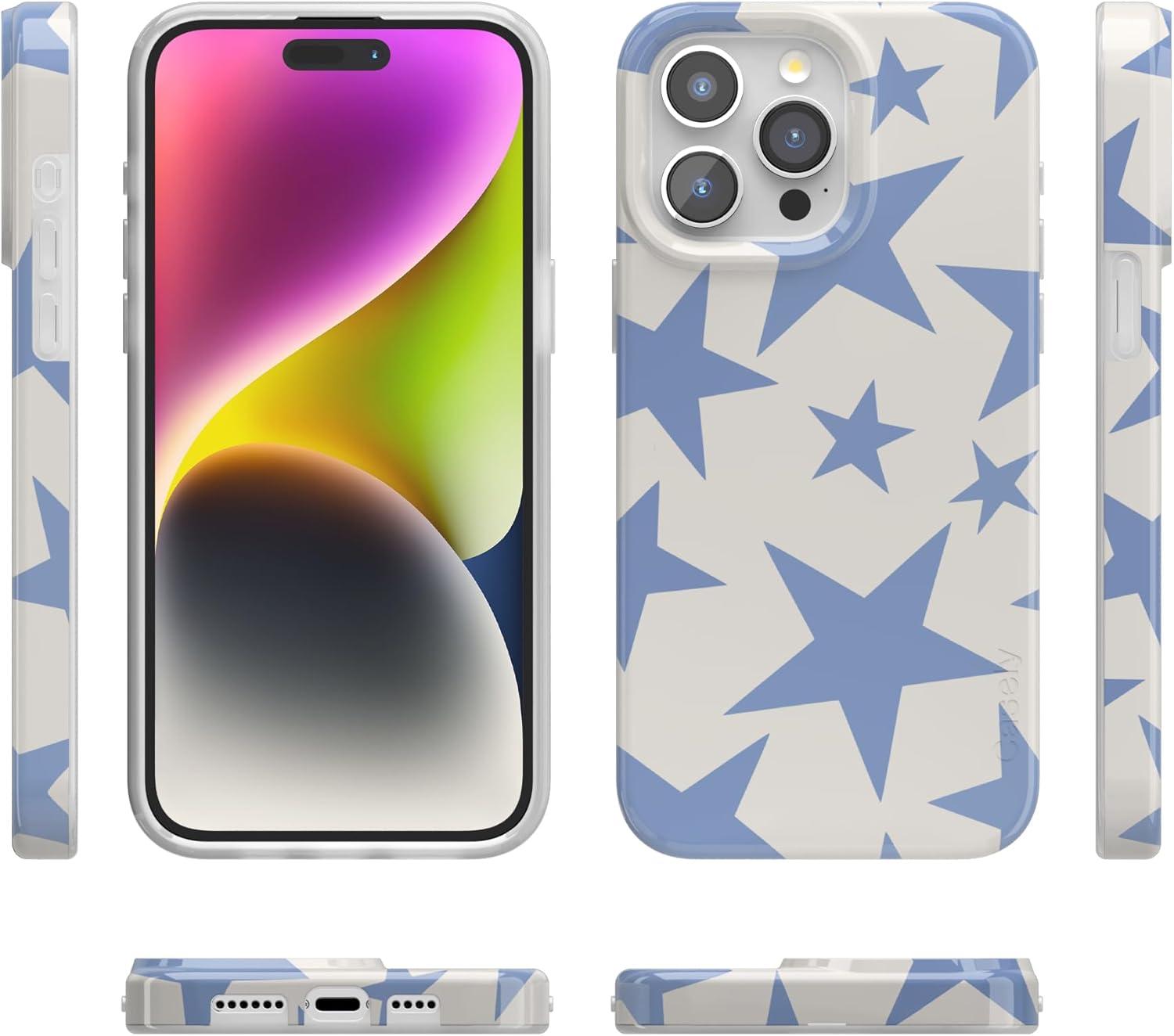 Casely iPhone 15 Pro Max Case | Moody Monochrome | Bordeaux Rose | Compatible with MagSafe | Classic Ultra Thin Design(Stars Align | Blue & White Stars)