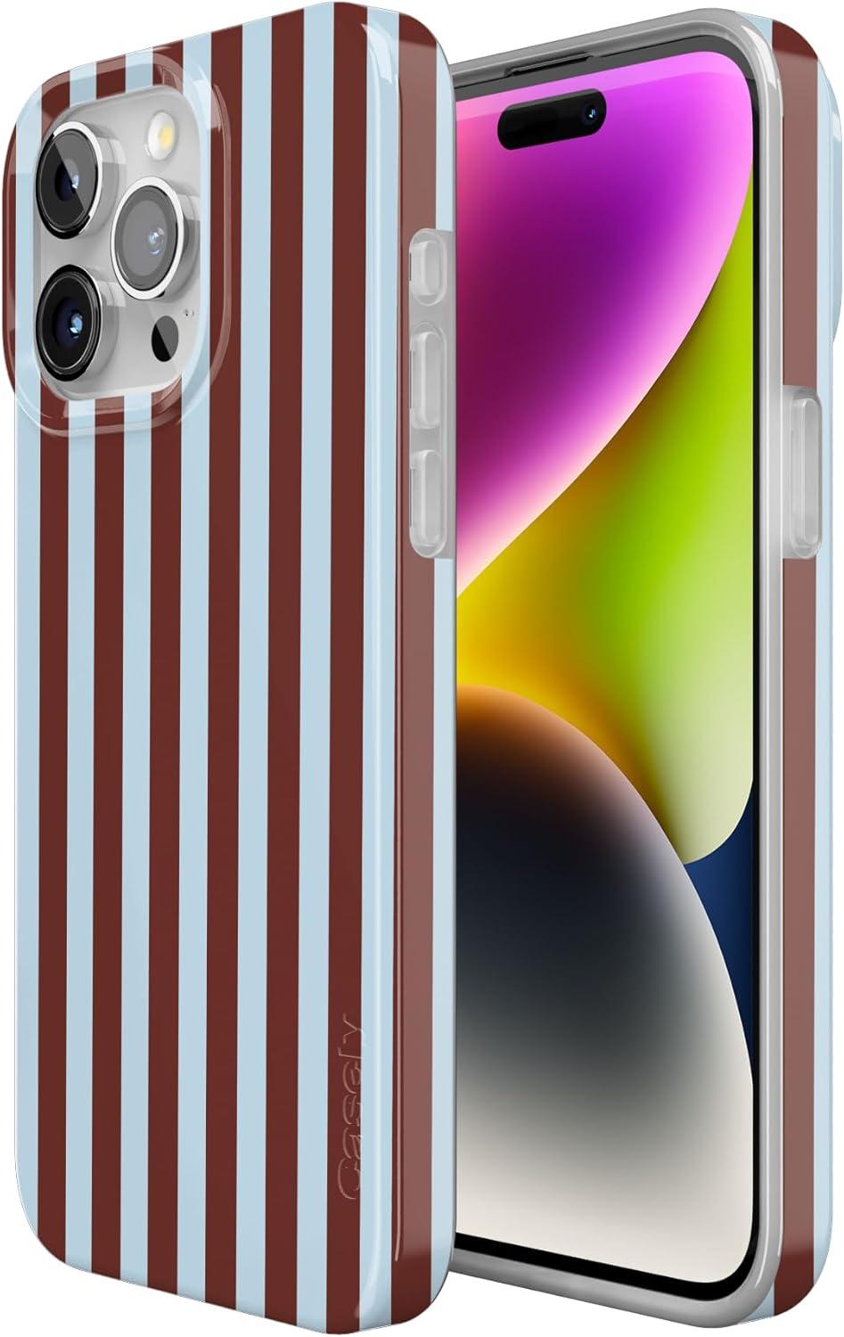 Casely iPhone 15 Pro Max Case | Moody Monochrome | Bordeaux Rose | Compatible with MagSafe | Classic Ultra Thin Design(Sunday in Brooklyn | Chocolate Stripes)