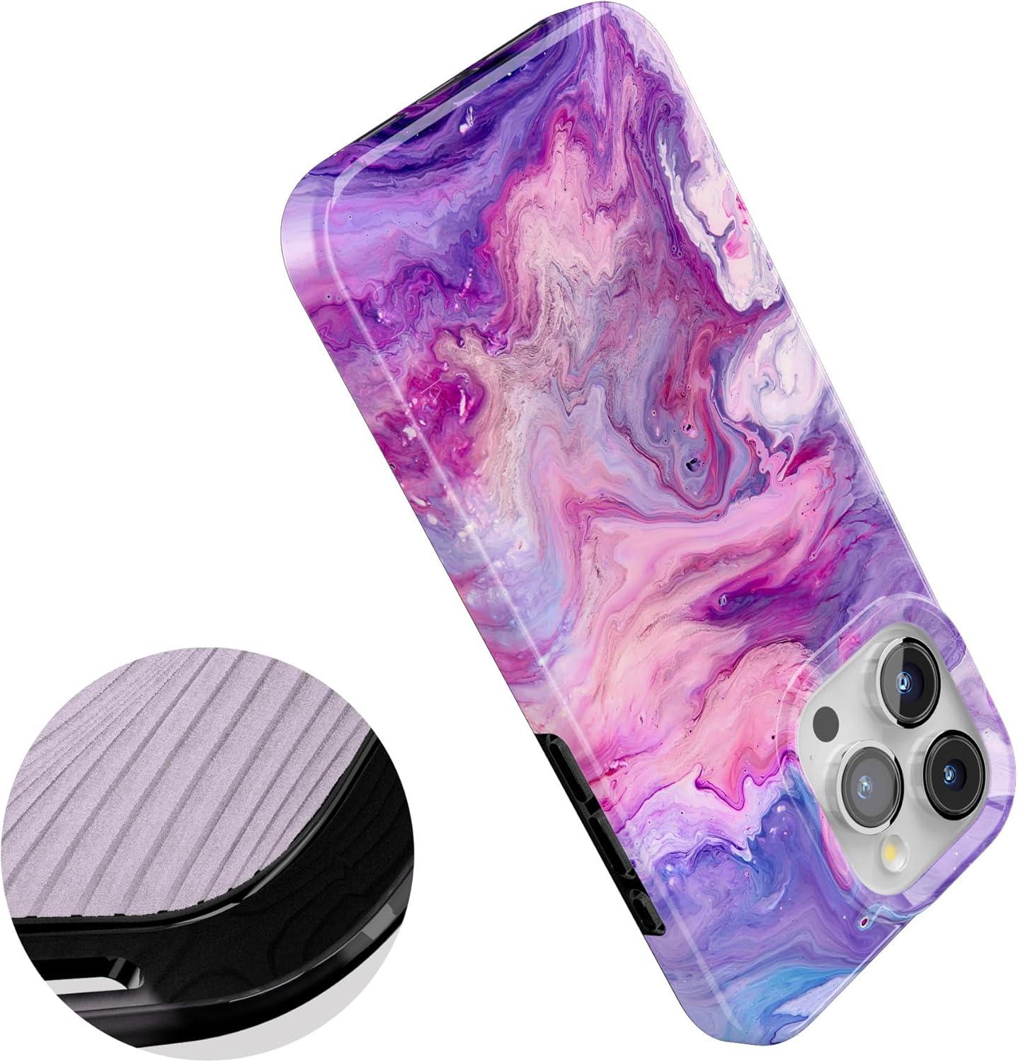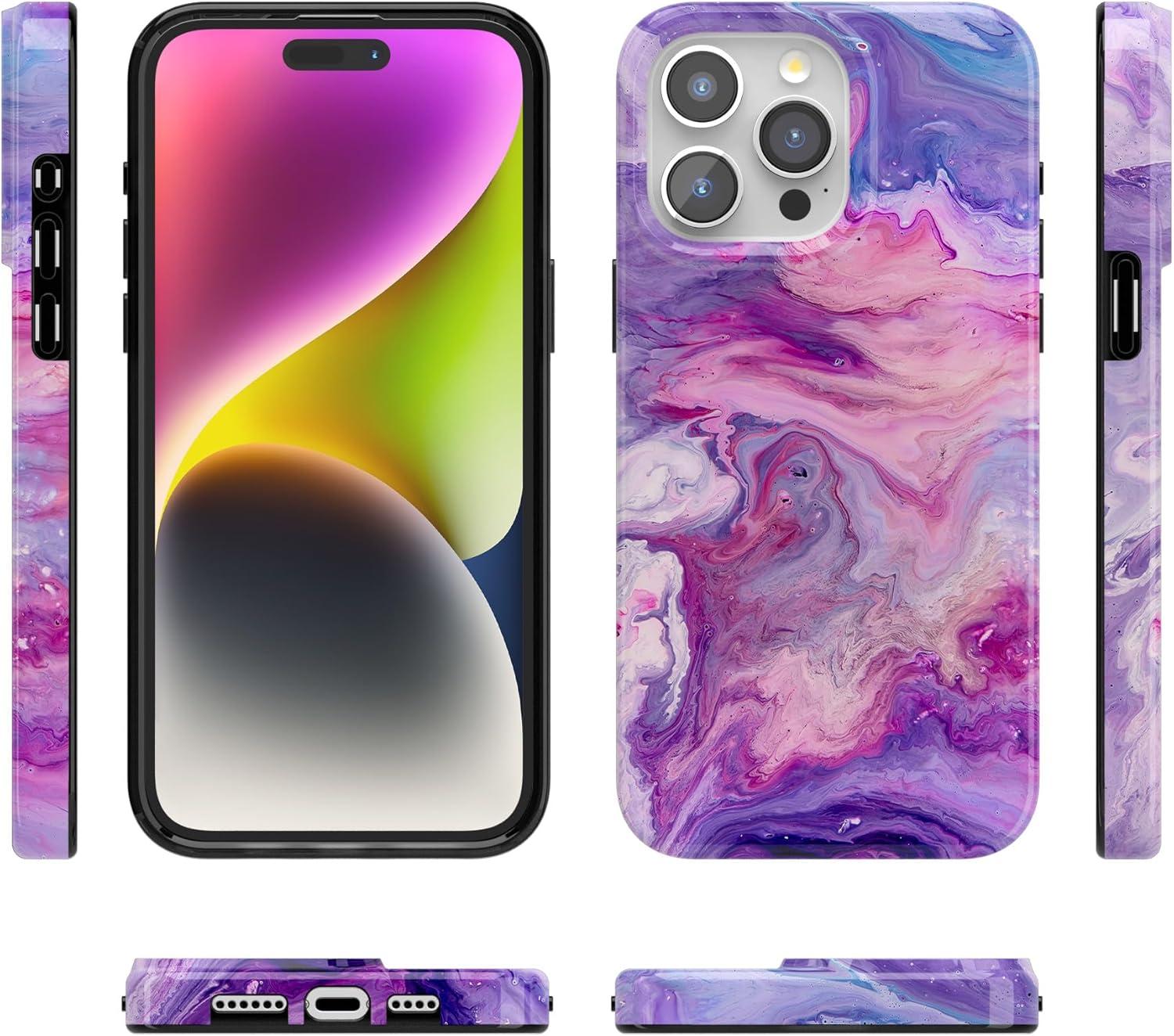 Casely iPhone 15 Pro Max Case | Moody Monochrome | Bordeaux Rose | Compatible with MagSafe | Classic Ultra Thin Design(Tie Dying Over You | Purple Marble)