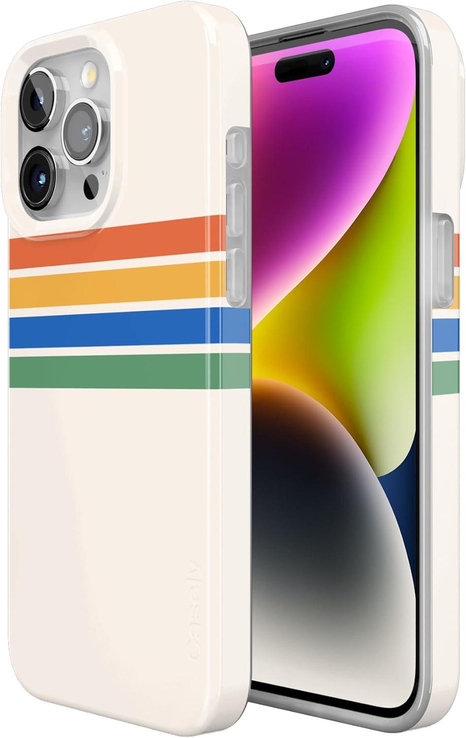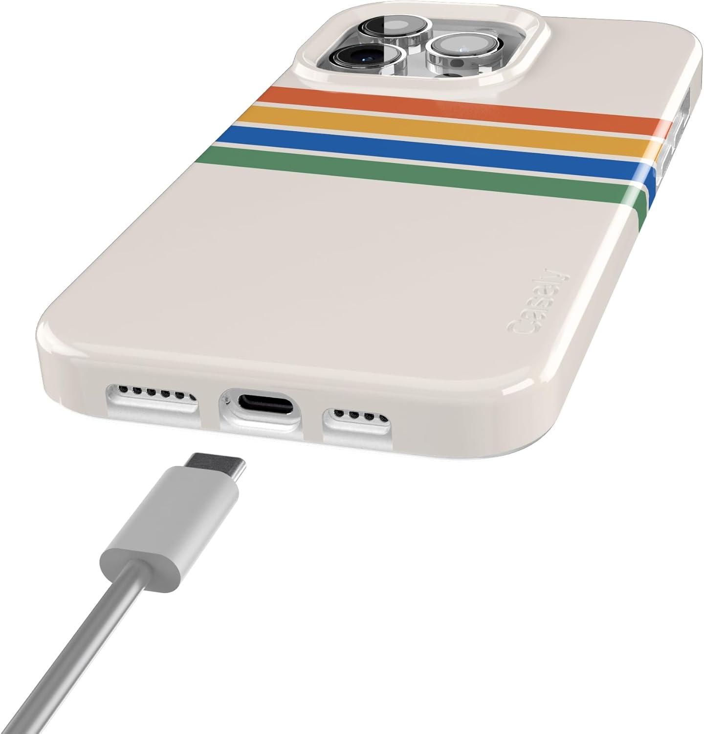 Casely iPhone 15 Pro Max Case | Moody Monochrome | Bordeaux Rose | Compatible with MagSafe | Classic Ultra Thin Design(Totally Groovy | Rainbow Stripes Color Block)