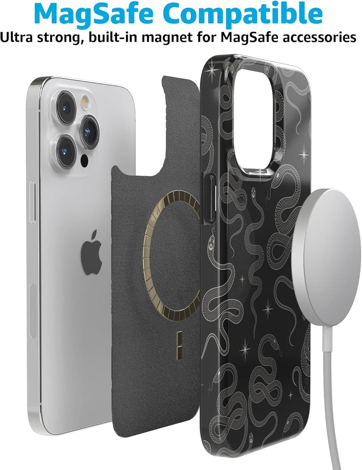 Casely iPhone 15 Pro Max Case | Moody Monochrome | Bordeaux Rose | Compatible with MagSafe | Classic Ultra Thin Design(We’re Ready For It | Black Serpent)