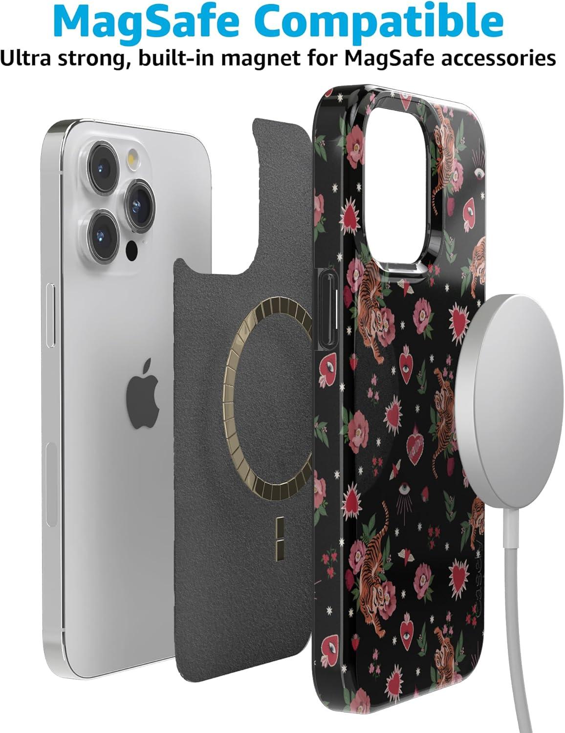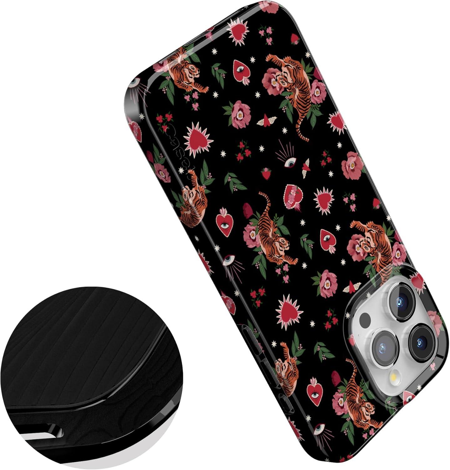 Casely iPhone 15 Pro Max Case | Moody Monochrome | Bordeaux Rose | Compatible with MagSafe | Classic Ultra Thin Design(Wild at Heart | Tiger)