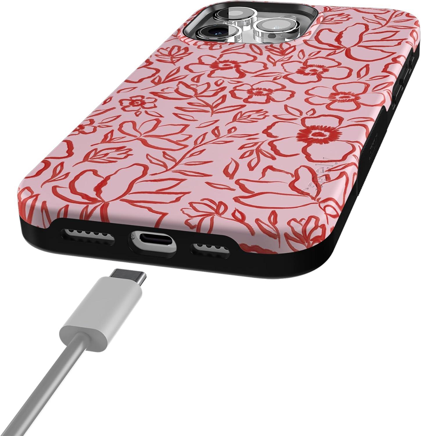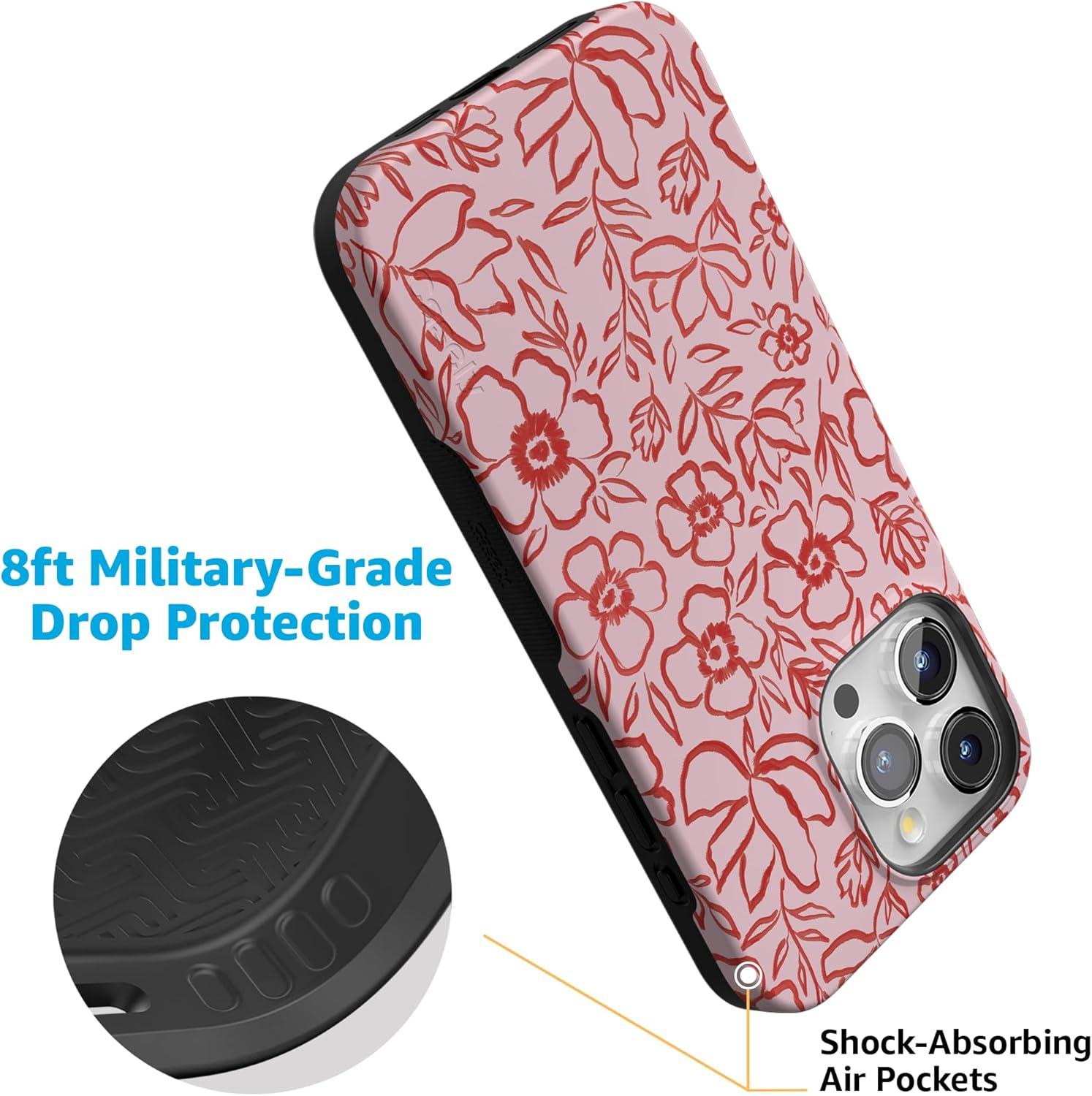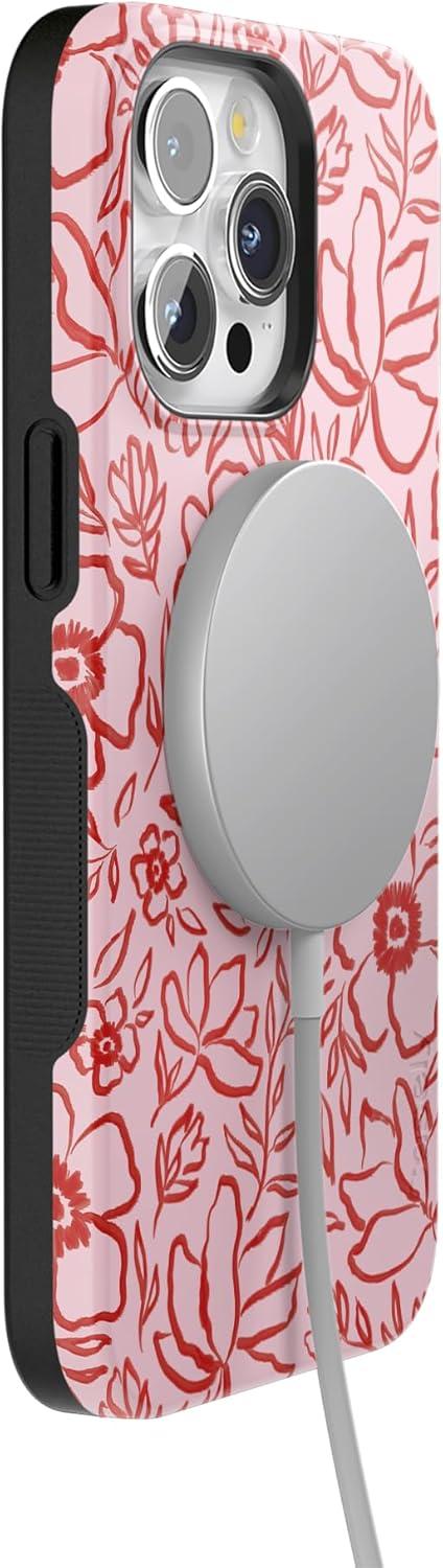 Casely iPhone 15 Pro Max Case | Twilight Flora | Moody Monochrome | Bold Protective Design | Compatible with MagSafe(Blush Garden | Floral Doodle)