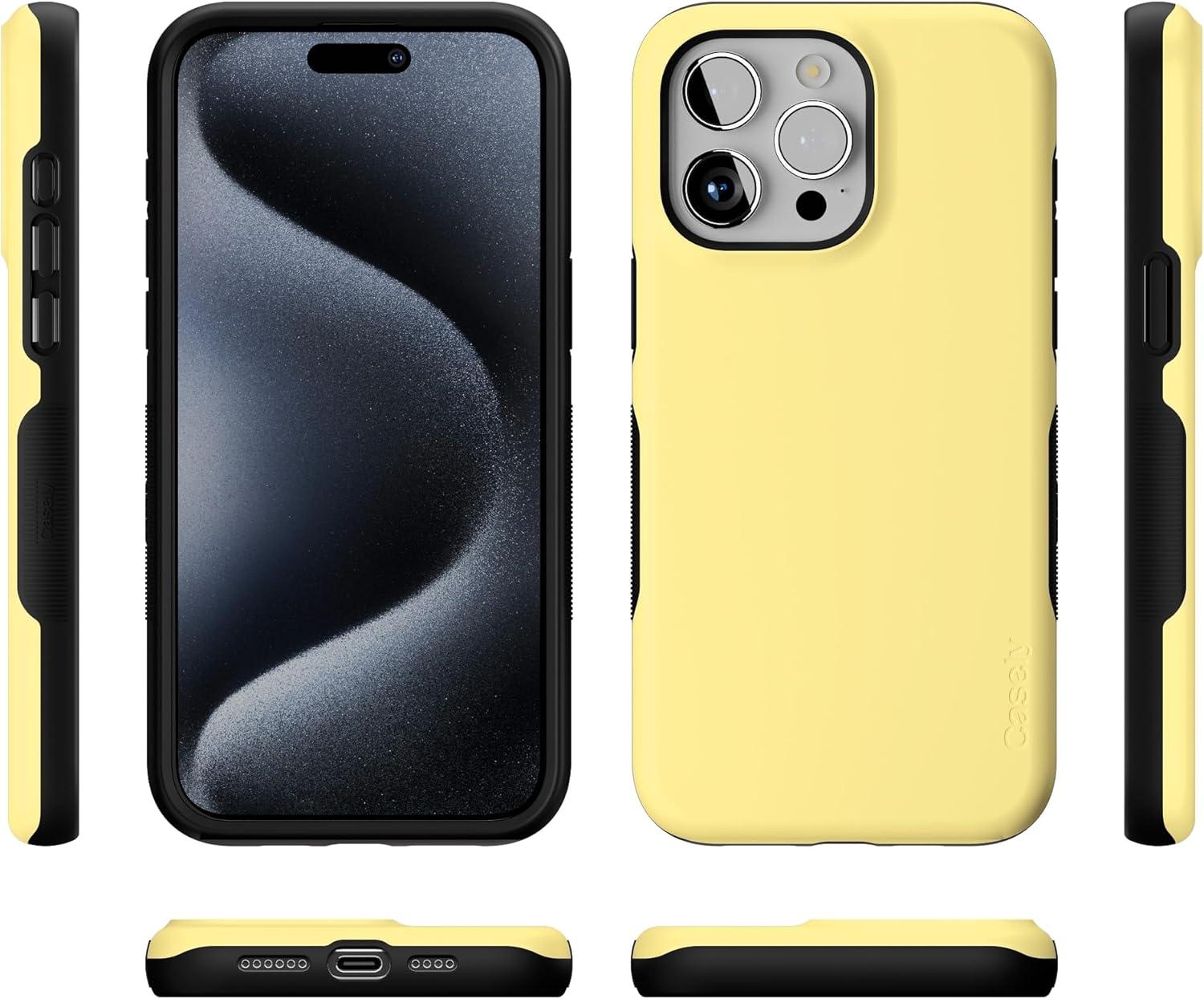 Casely iPhone 15 Pro Max Case | Twilight Flora | Moody Monochrome | Bold Protective Design | Compatible with MagSafe(Butter Me Up | Butter Yellow)
