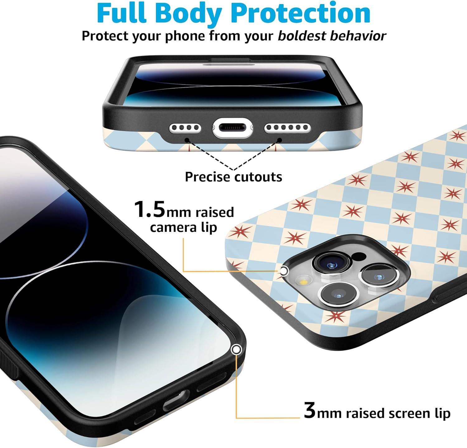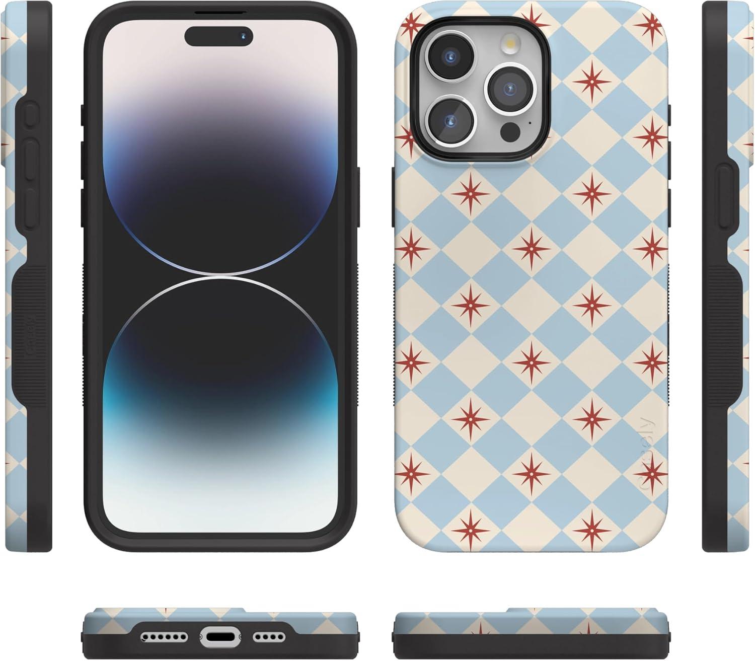 Casely iPhone 15 Pro Max Case | Twilight Flora | Moody Monochrome | Bold Protective Design | Compatible with MagSafe(Chelsea Checker | Starlight Tiles)