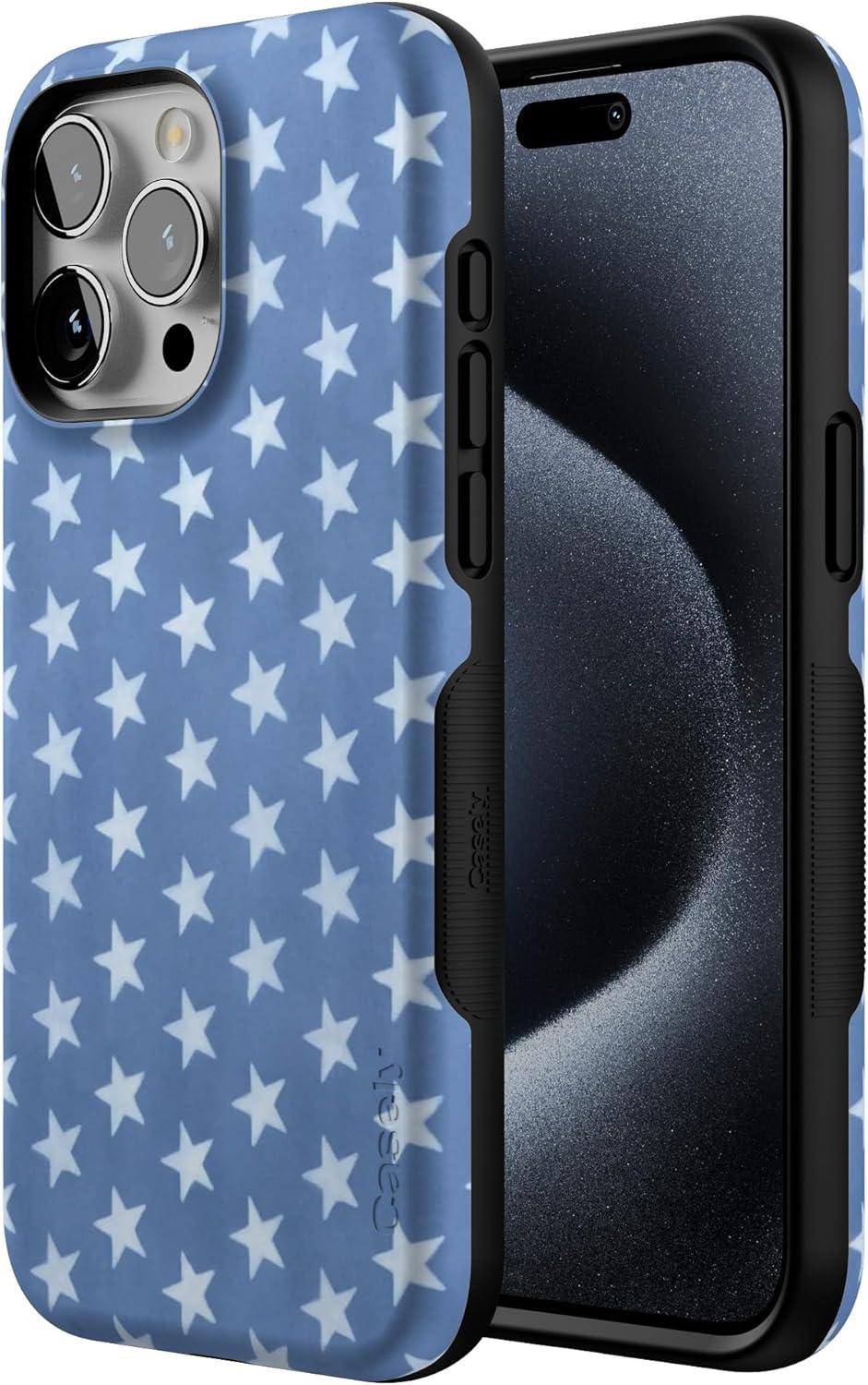 Casely iPhone 15 Pro Max Case | Twilight Flora | Moody Monochrome | Bold Protective Design | Compatible with MagSafe(Coastal Blues | Denim Stars)