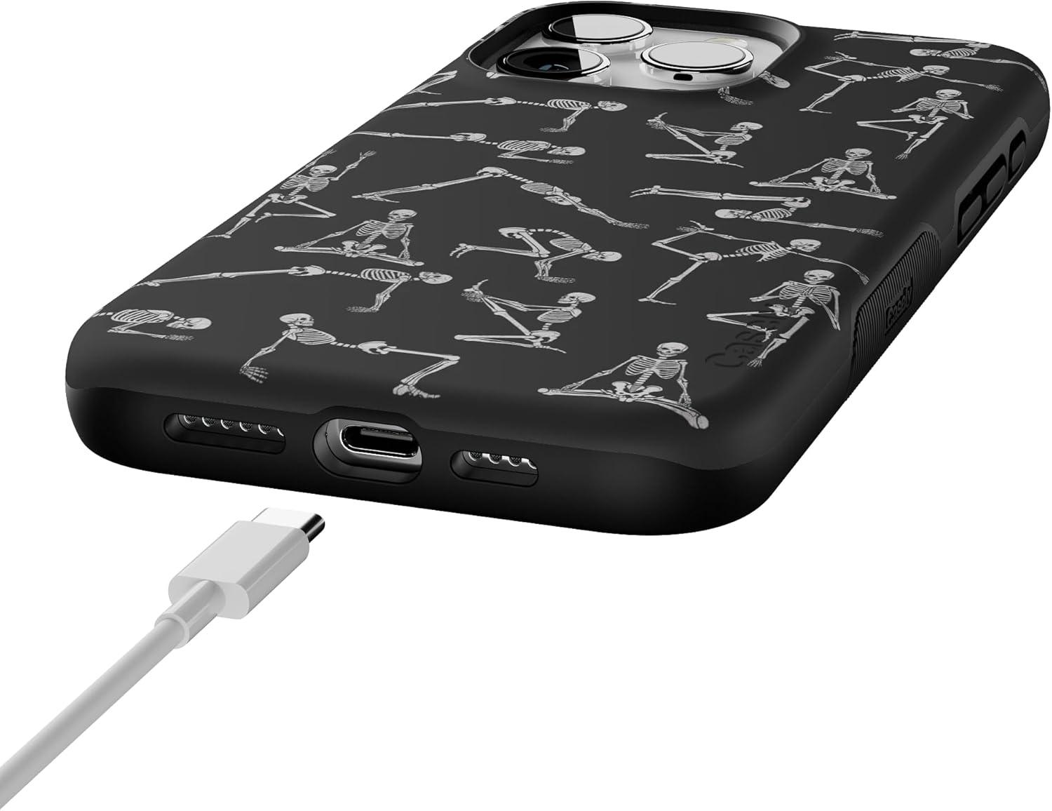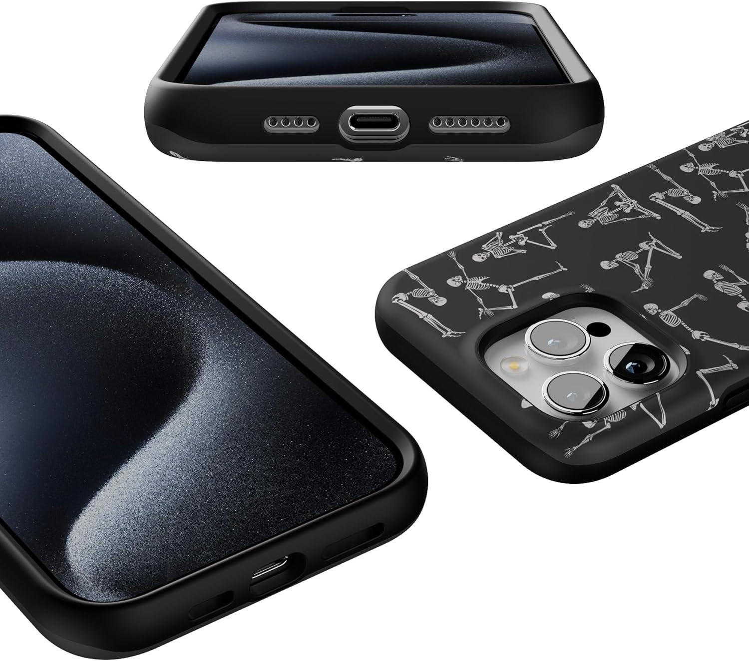 Casely iPhone 15 Pro Max Case | Twilight Flora | Moody Monochrome | Bold Protective Design | Compatible with MagSafe(Corpse Pose | Skeleton Yoga)