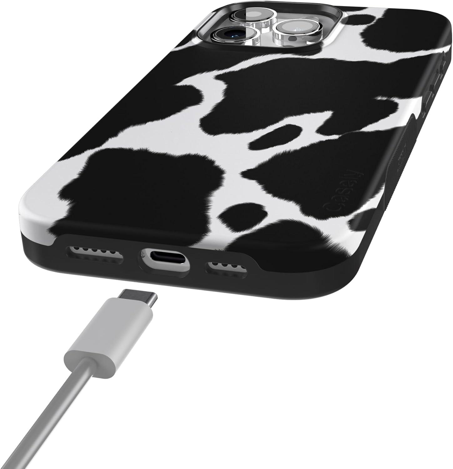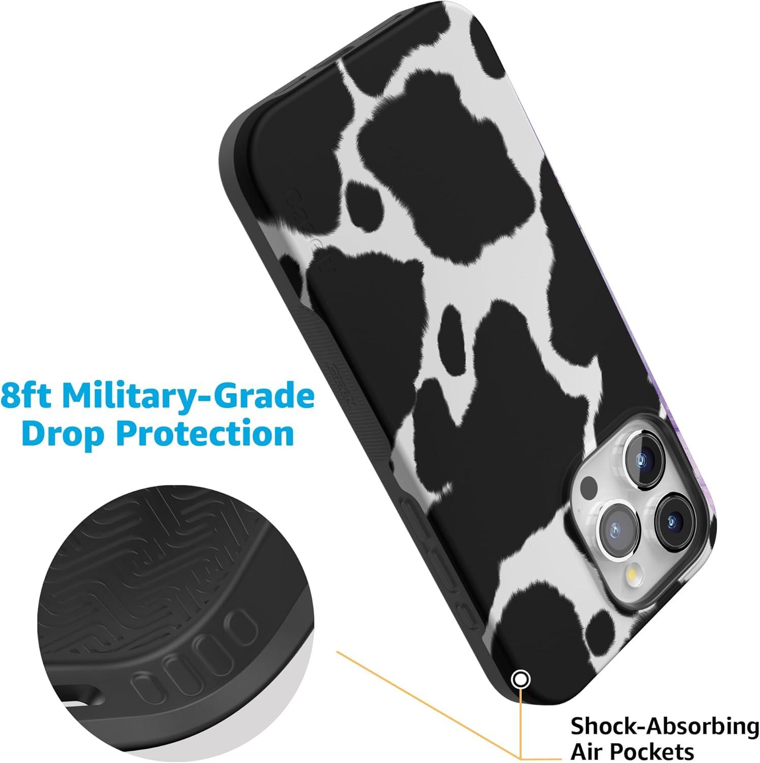 Casely iPhone 15 Pro Max Case | Twilight Flora | Moody Monochrome | Bold Protective Design | Compatible with MagSafe(Current MOOd | Cow Print)