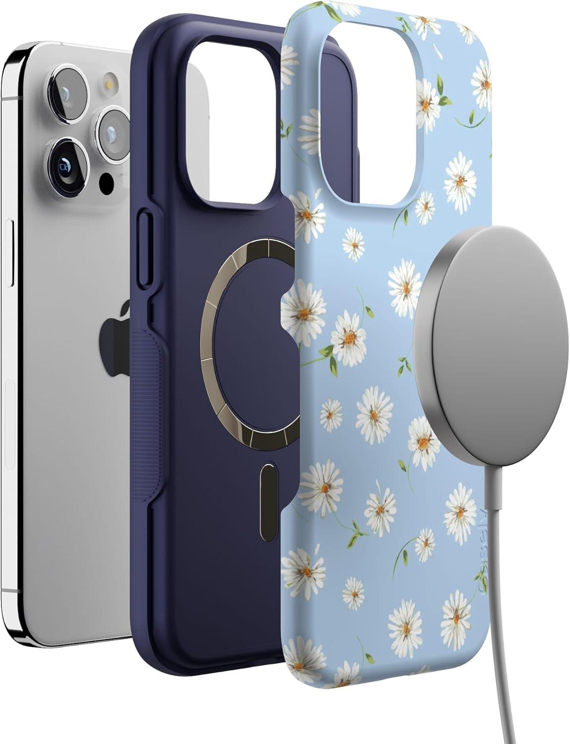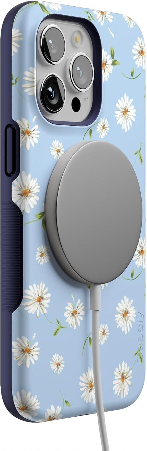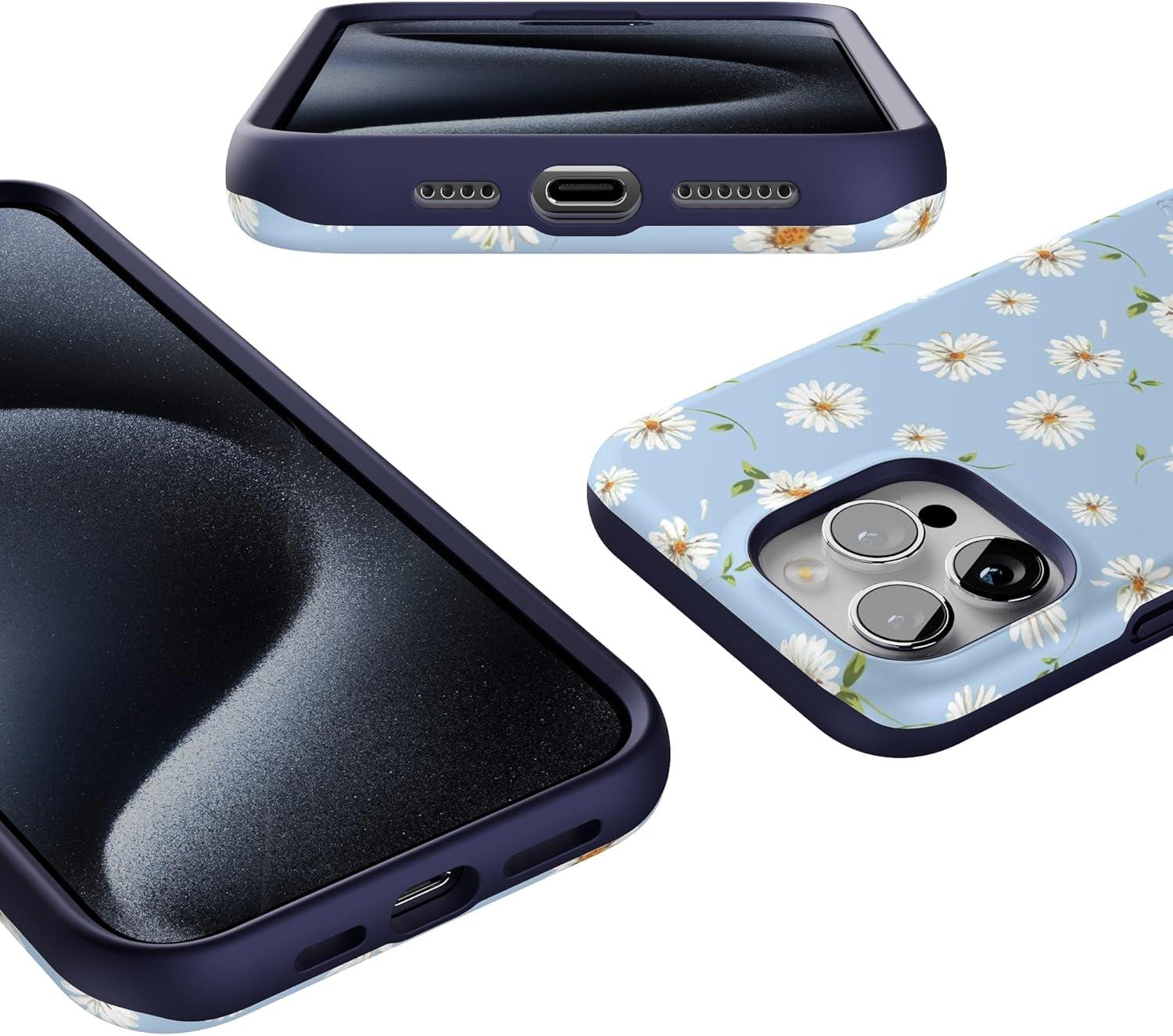 Casely iPhone 15 Pro Max Case | Twilight Flora | Moody Monochrome | Bold Protective Design | Compatible with MagSafe(Daisy Daydream | Baby Blue Floral)