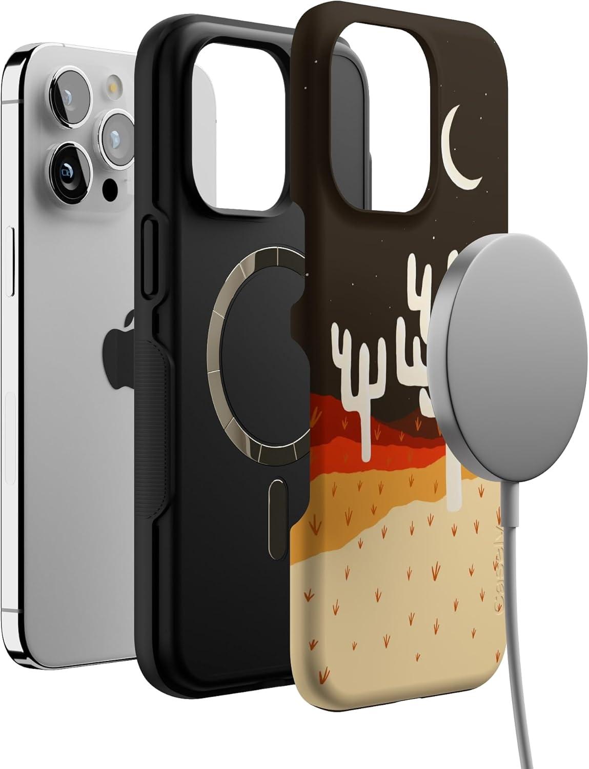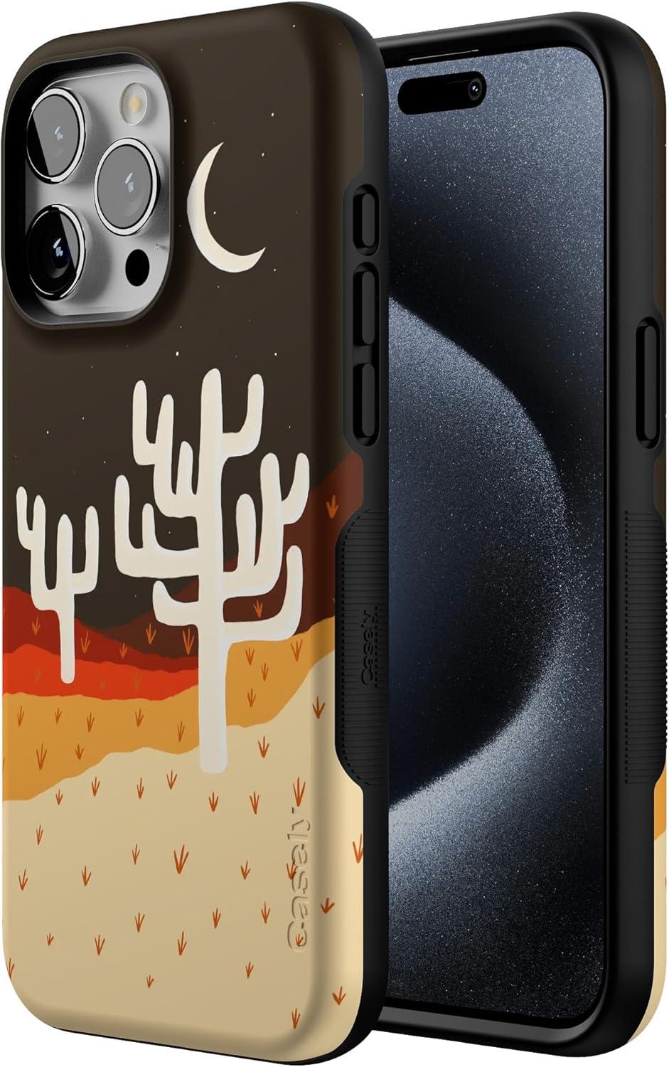Casely iPhone 15 Pro Max Case | Twilight Flora | Moody Monochrome | Bold Protective Design | Compatible with MagSafe(Desert Nights | Cactus Colorblock)