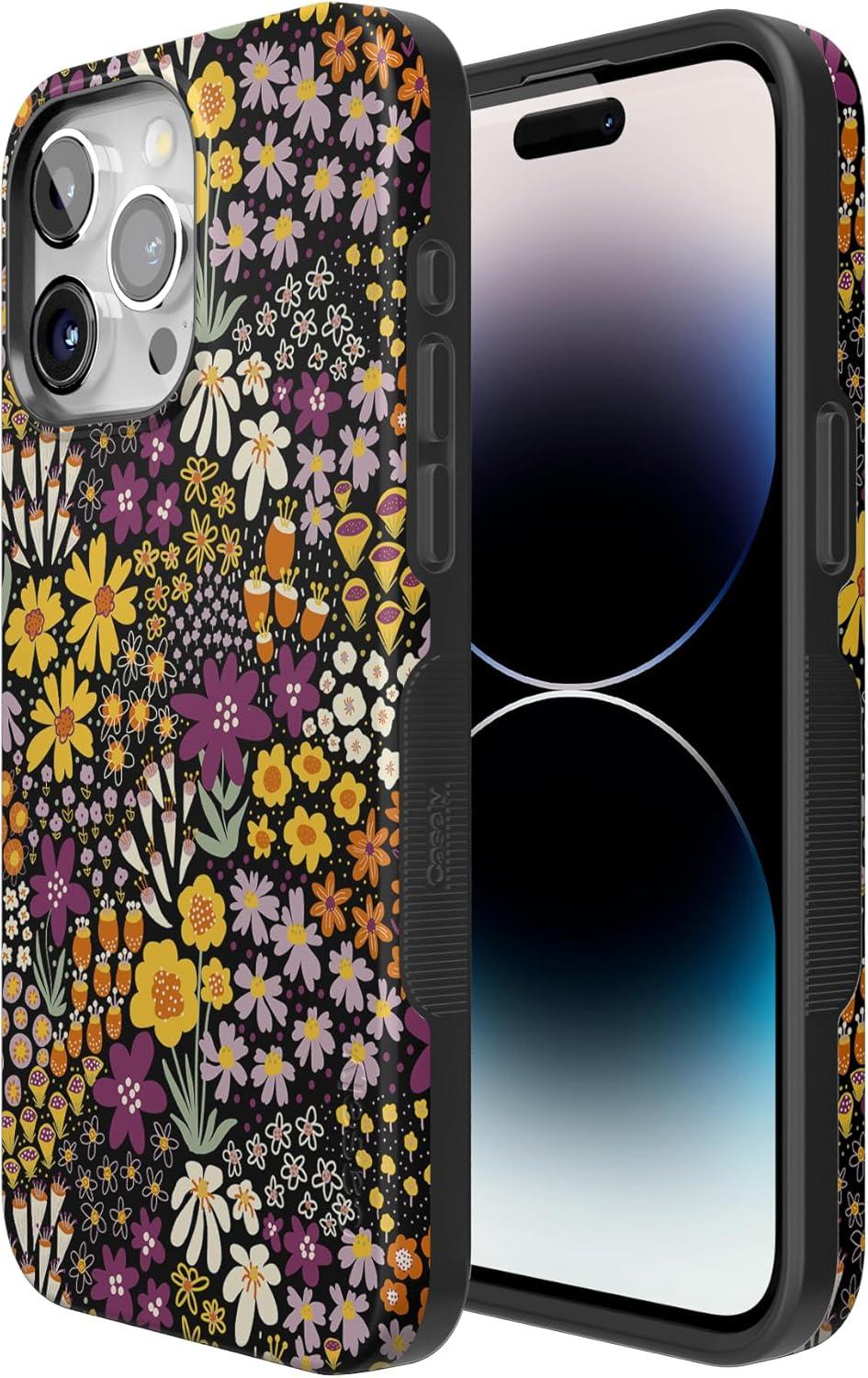 Casely iPhone 15 Pro Max Case | Twilight Flora | Moody Monochrome | Bold Protective Design | Compatible with MagSafe(Falling for You | Plum Floral)