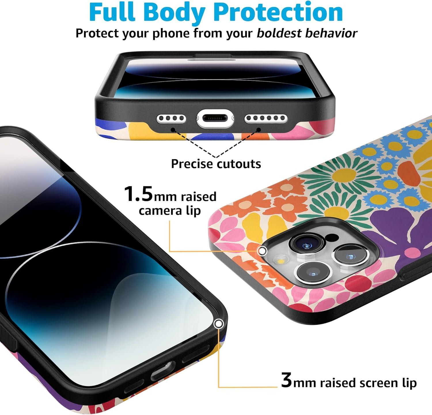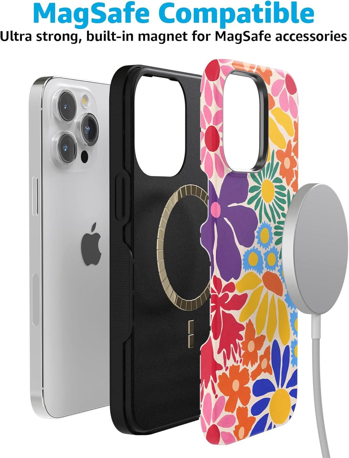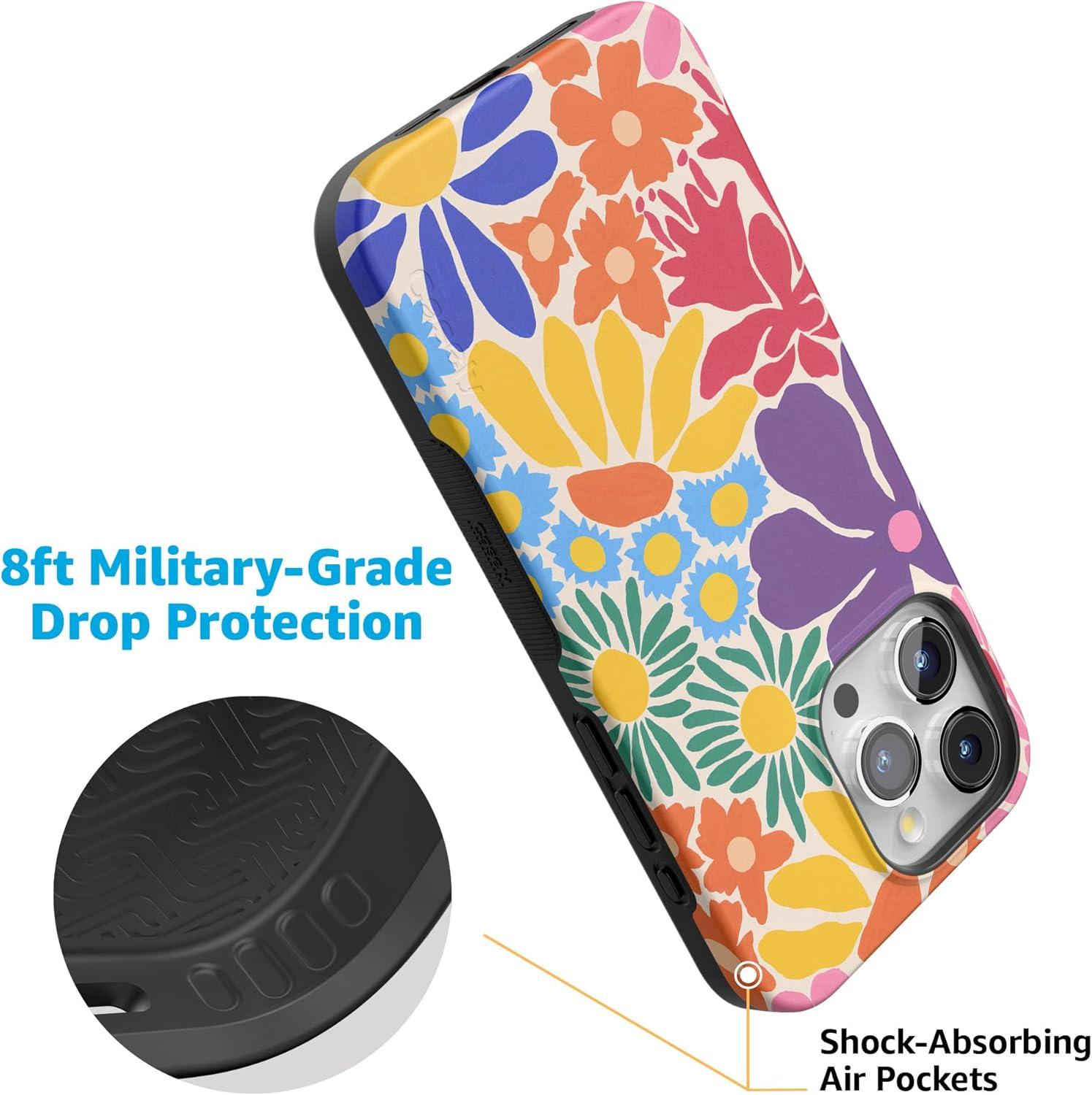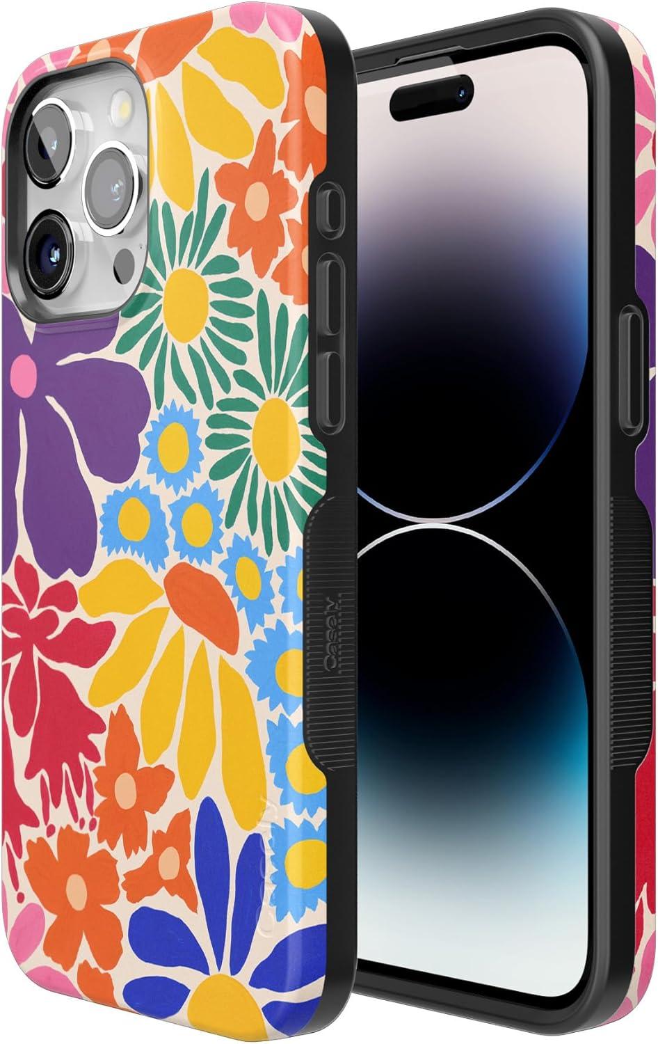 Casely iPhone 15 Pro Max Case | Twilight Flora | Moody Monochrome | Bold Protective Design | Compatible with MagSafe(Flower Patch | Multi-Color Floral)