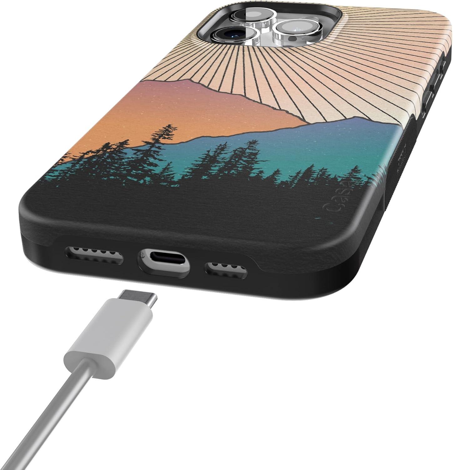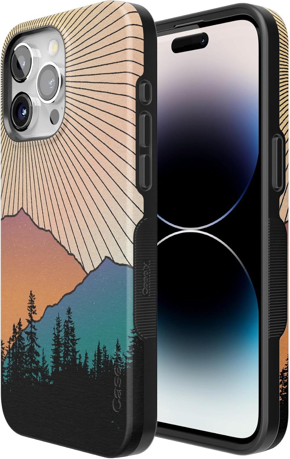 Casely iPhone 15 Pro Max Case | Twilight Flora | Moody Monochrome | Bold Protective Design | Compatible with MagSafe(Golden Hour | Mountain Sunset)