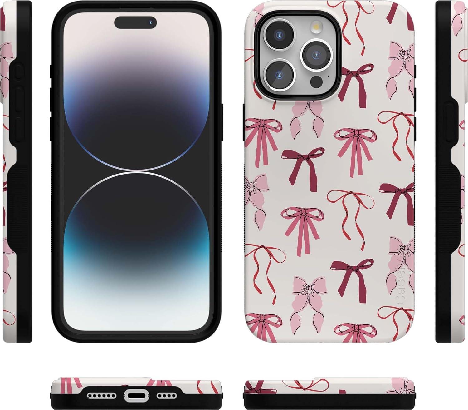 Casely iPhone 15 Pro Max Case | Twilight Flora | Moody Monochrome | Bold Protective Design | Compatible with MagSafe(Lover Girlie | Pink Bows)