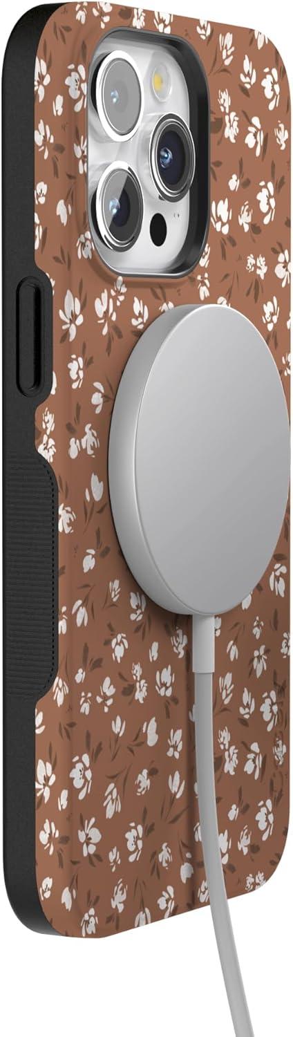 Casely iPhone 15 Pro Max Case | Twilight Flora | Moody Monochrome | Bold Protective Design | Compatible with MagSafe(Mocha Meadow | Tiny Flowers)