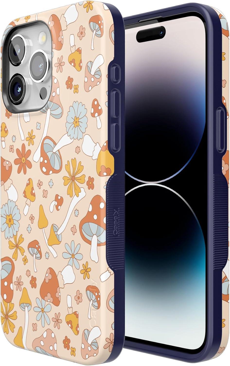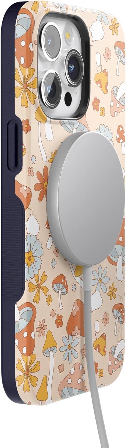 Casely iPhone 15 Pro Max Case | Twilight Flora | Moody Monochrome | Bold Protective Design | Compatible with MagSafe(Mushroom Magic | Retro Floral)