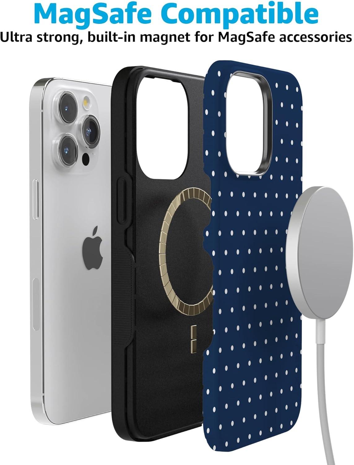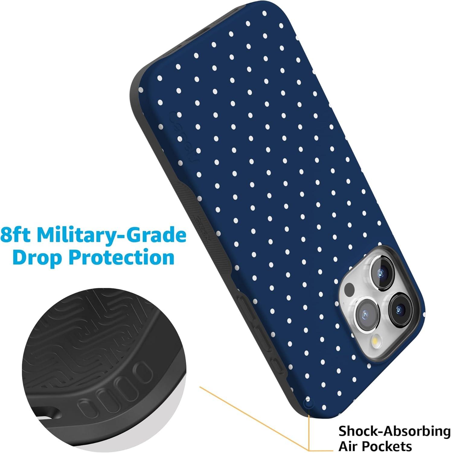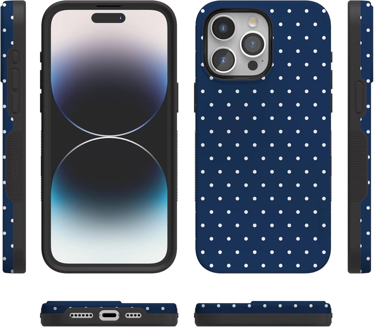Casely iPhone 15 Pro Max Case | Twilight Flora | Moody Monochrome | Bold Protective Design | Compatible with MagSafe(On the Dot | Navy Polka Dot)