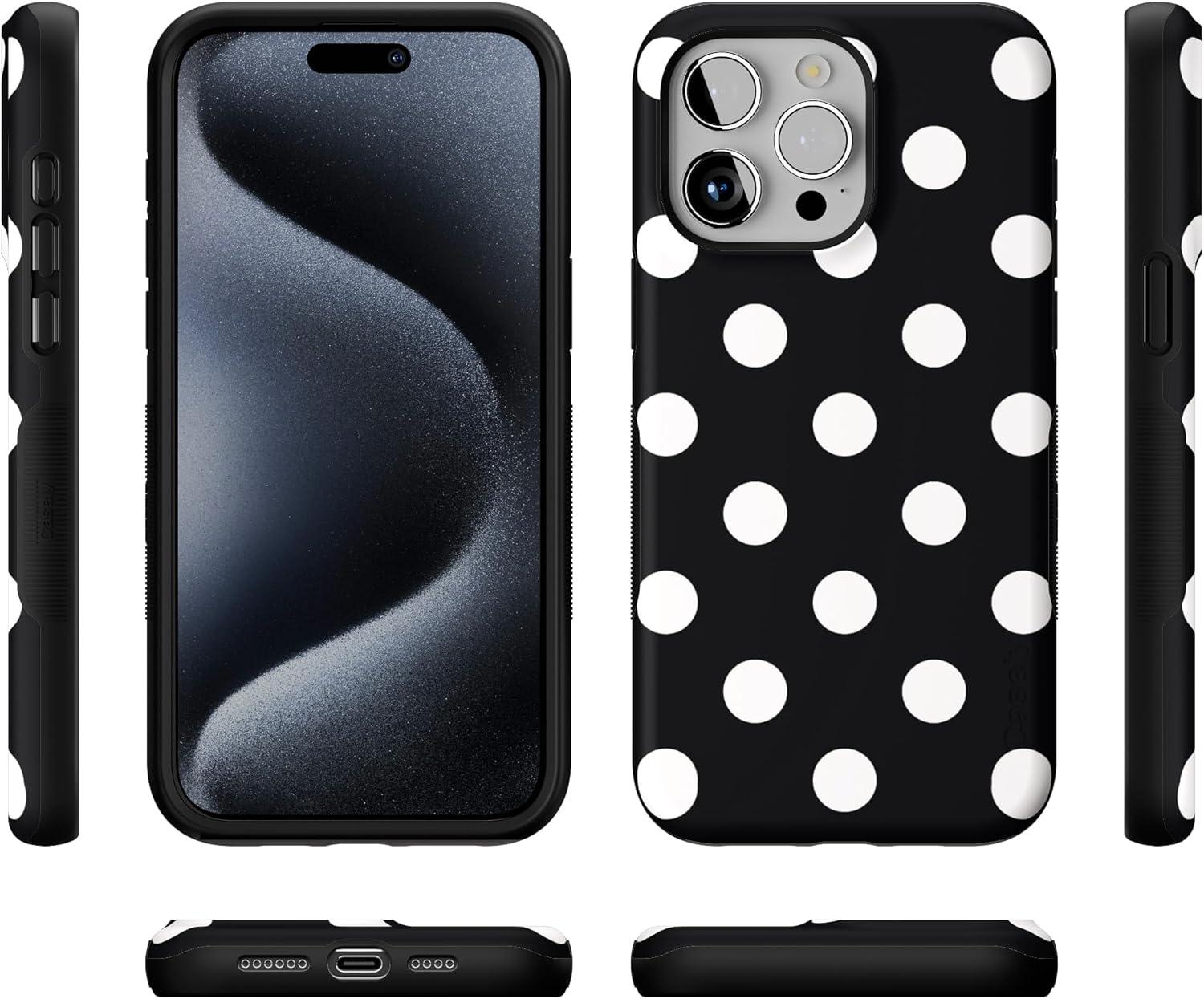 Casely iPhone 15 Pro Max Case | Twilight Flora | Moody Monochrome | Bold Protective Design | Compatible with MagSafe(Polka Dots | High Contrast)
