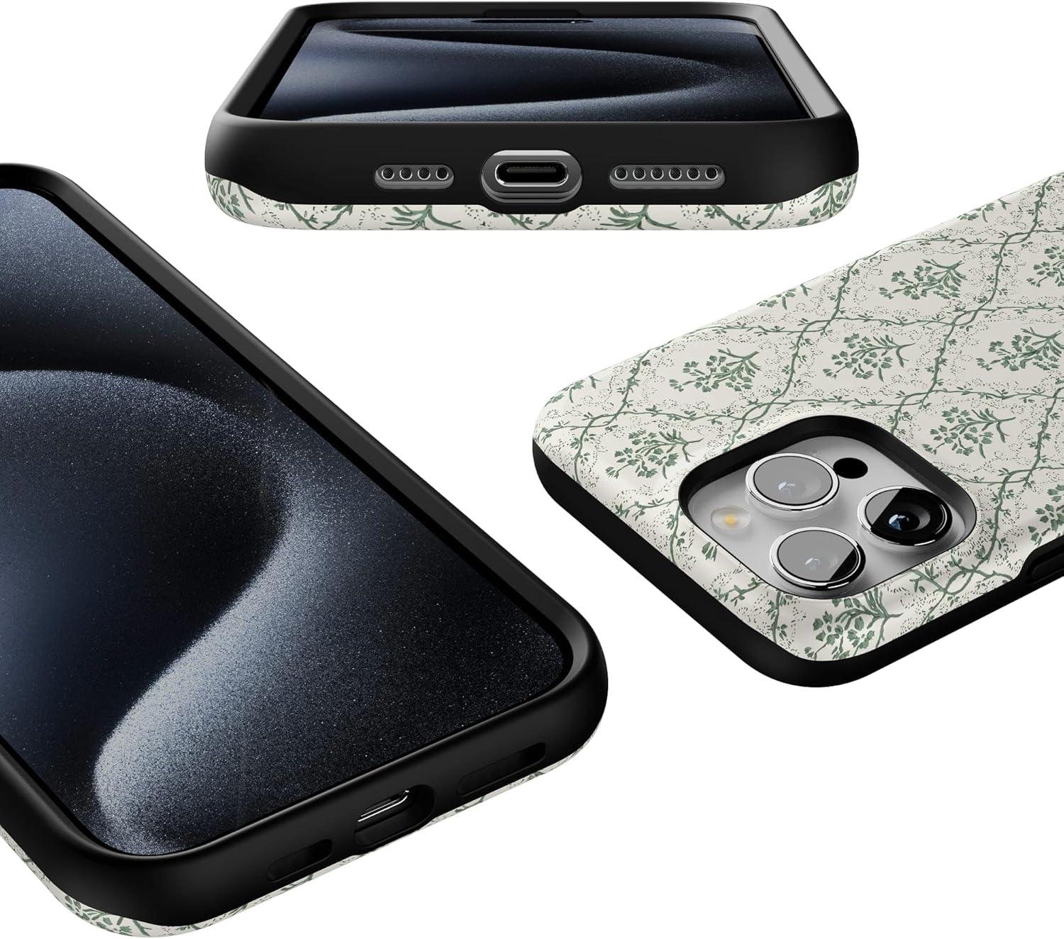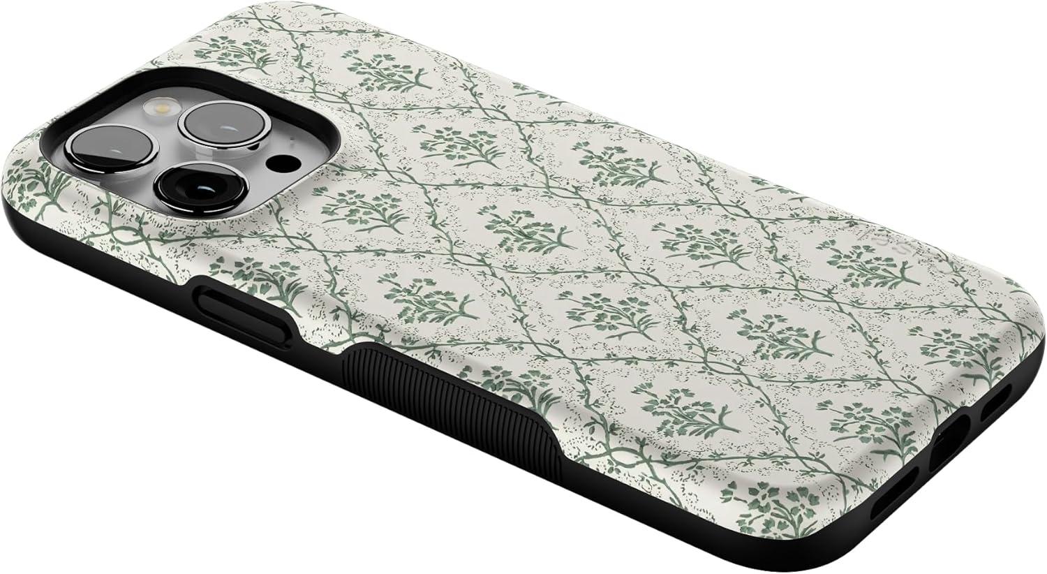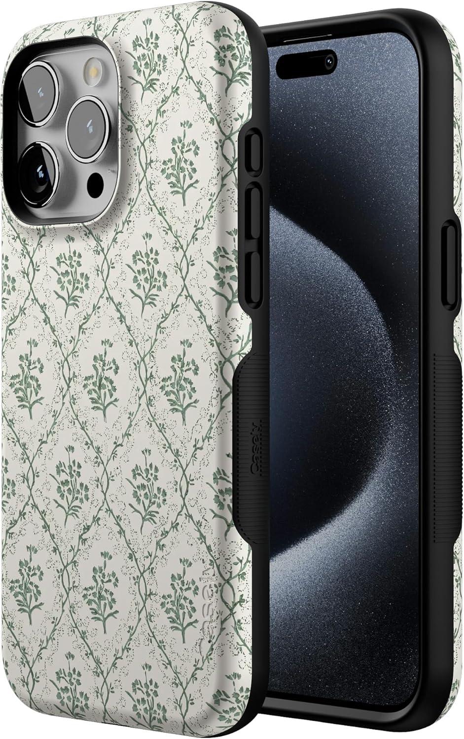 Casely iPhone 15 Pro Max Case | Twilight Flora | Moody Monochrome | Bold Protective Design | Compatible with MagSafe(Sage Tapestry | Floral Vines)