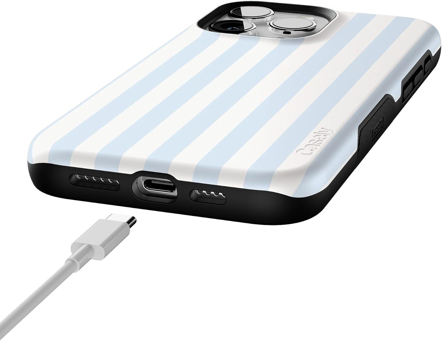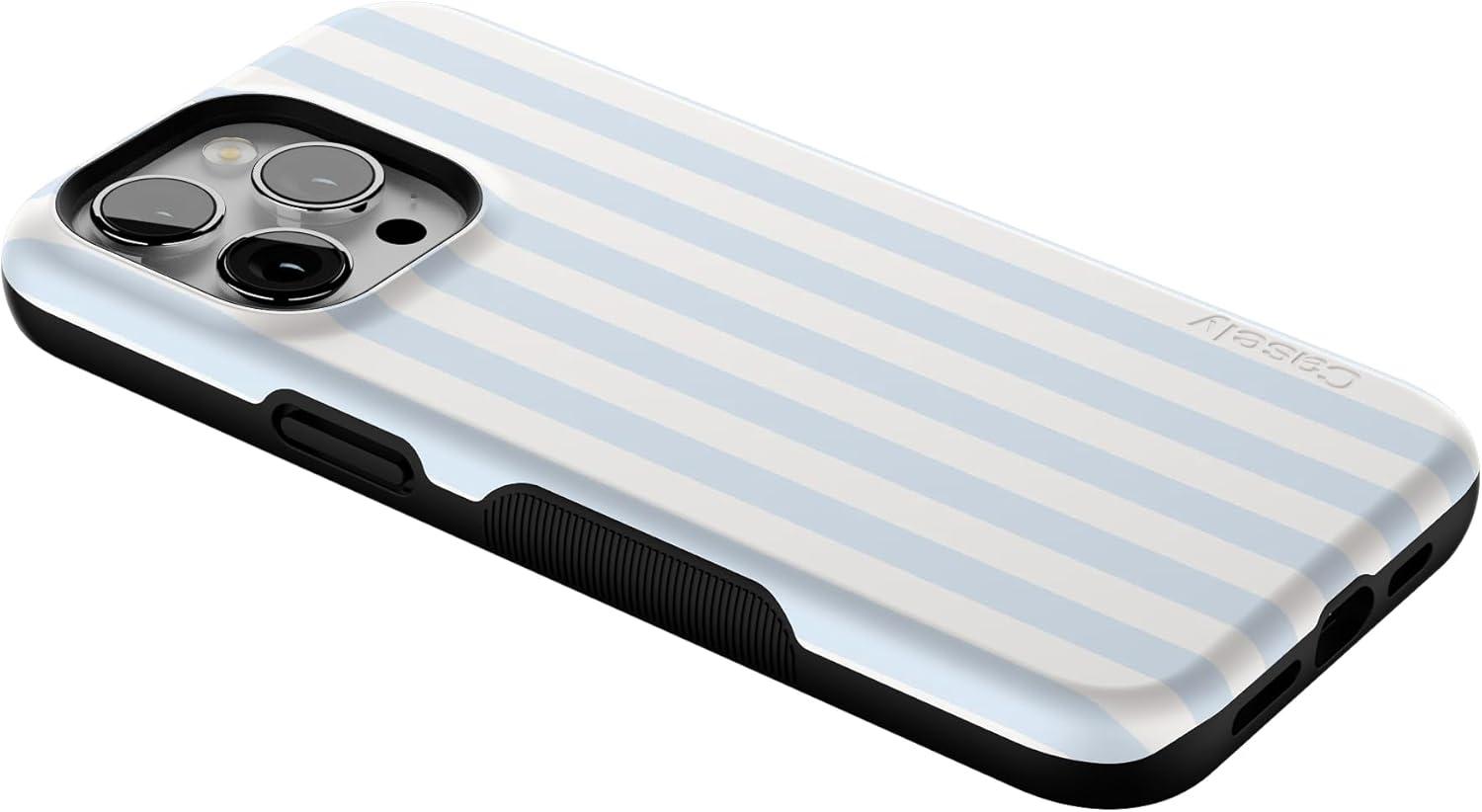 Casely iPhone 15 Pro Max Case | Twilight Flora | Moody Monochrome | Bold Protective Design | Compatible with MagSafe(Sunday Best | Blue Stripes)