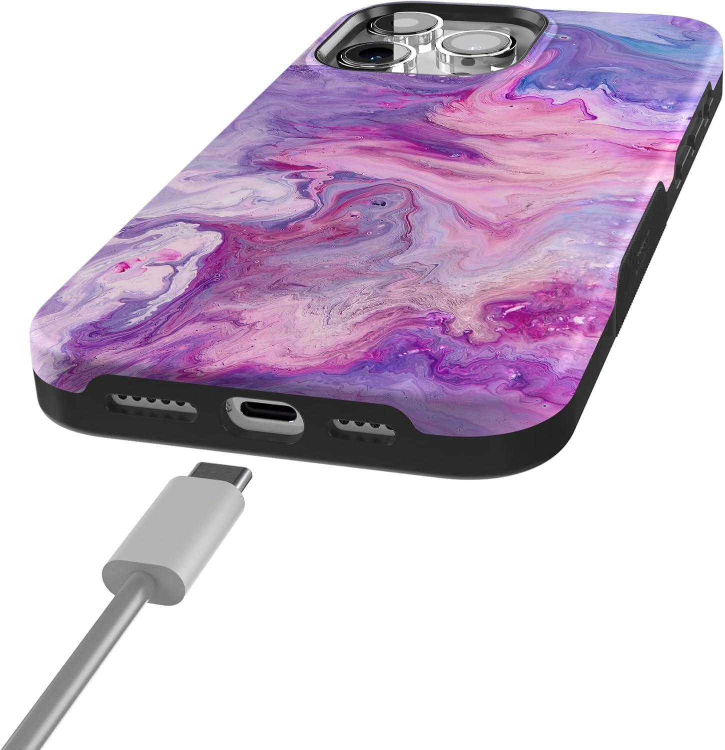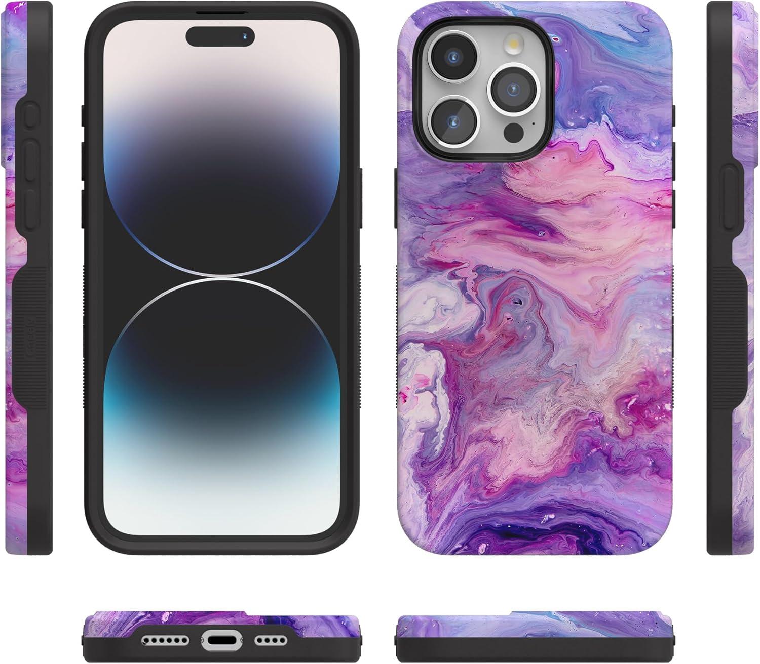 Casely iPhone 15 Pro Max Case | Twilight Flora | Moody Monochrome | Bold Protective Design | Compatible with MagSafe(Tie Dying Over You | Purple Marble)