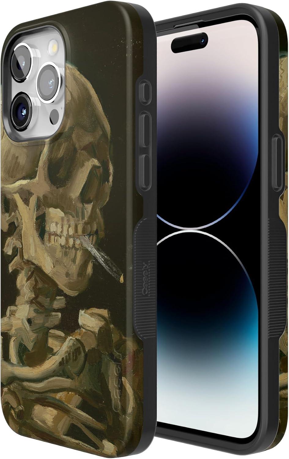 Casely iPhone 15 Pro Max Case | Twilight Flora | Moody Monochrome | Bold Protective Design | Compatible with MagSafe(Van Gogh | Skull of a Skeleton with Burning Cig)