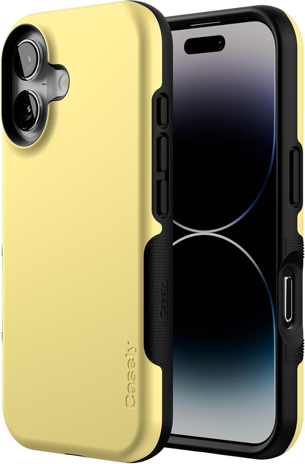Casely iPhone 16 Case | All Smiles | Smiley Face Sticker | Bold Protective Design | MagSafe Compatible Design(Butter Me Up | Butter Yellow)