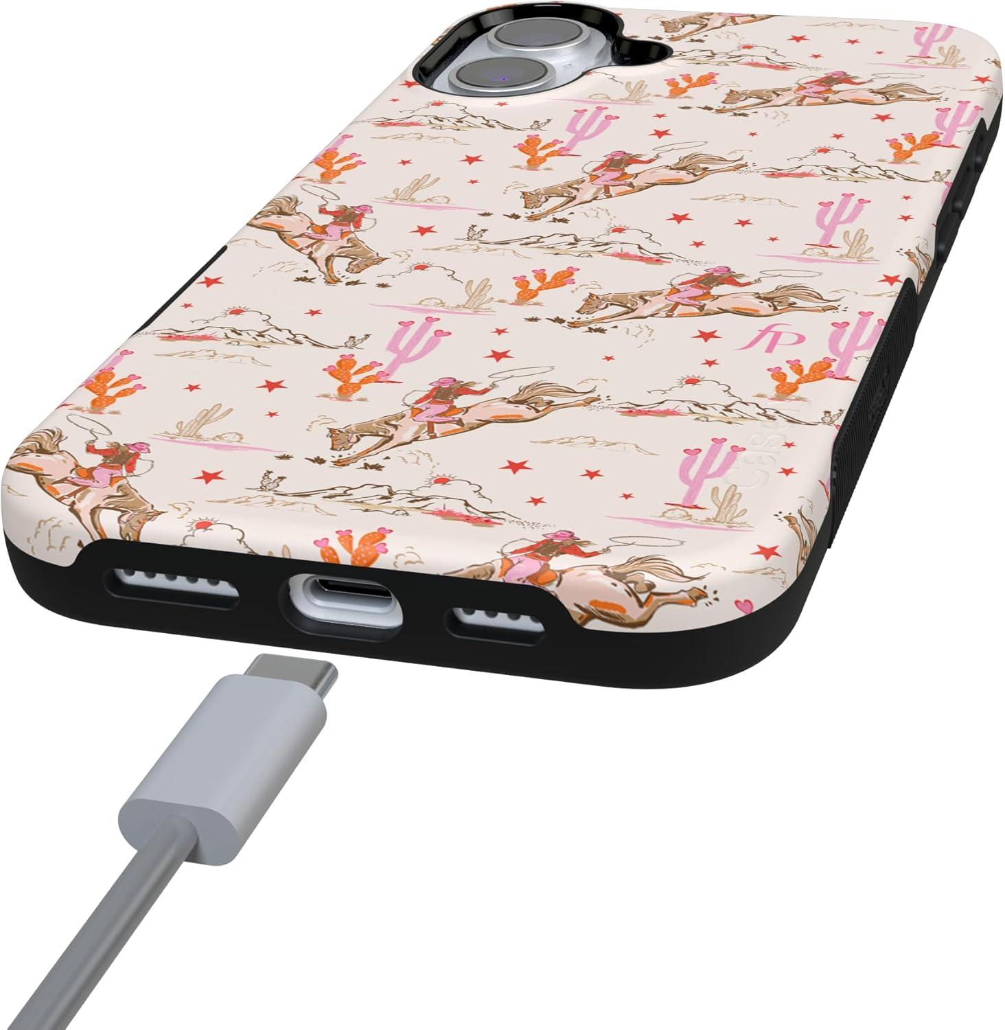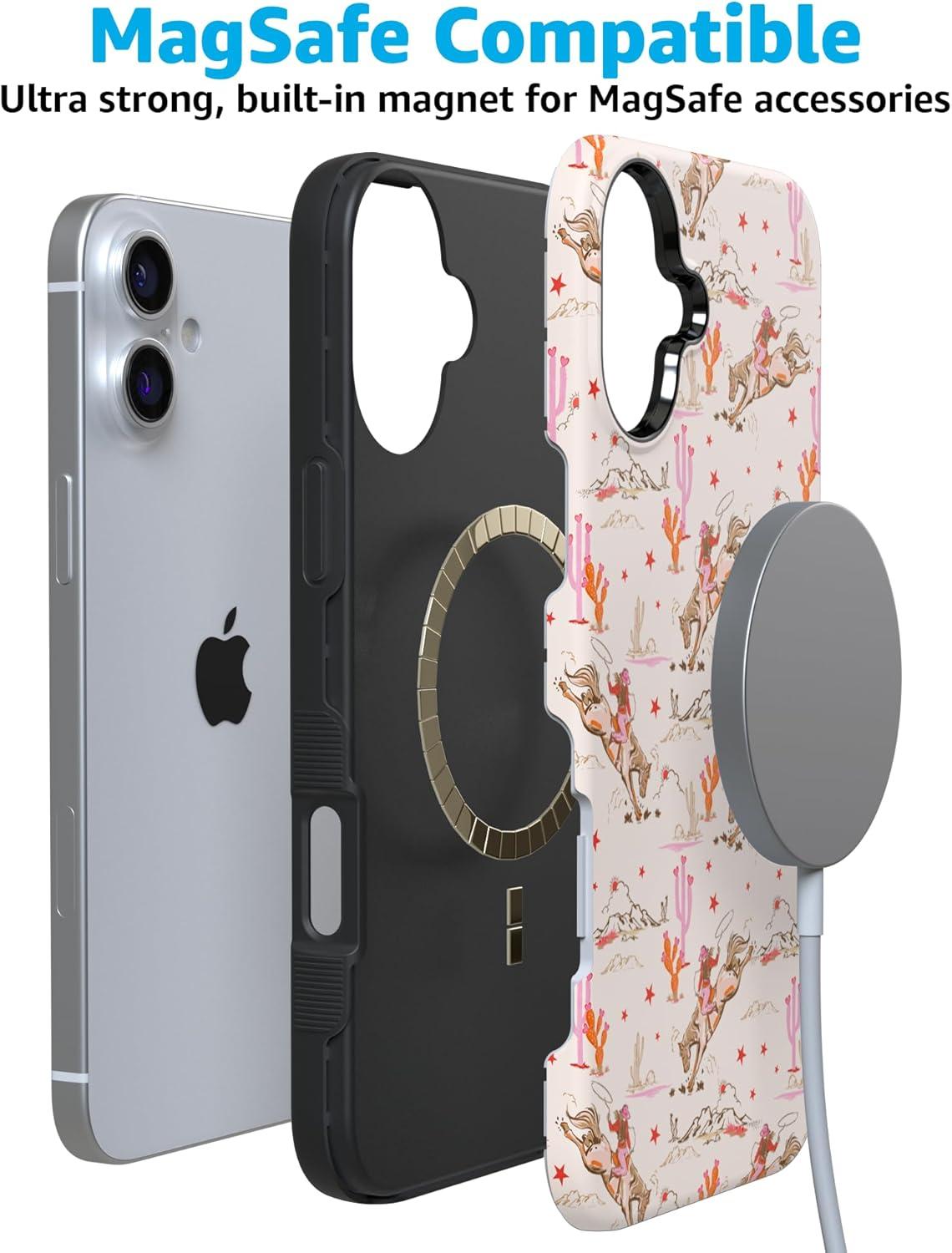 Casely iPhone 16 Case | All Smiles | Smiley Face Sticker | Bold Protective Design | MagSafe Compatible Design(Cowgirl Canyon | FashionPass)