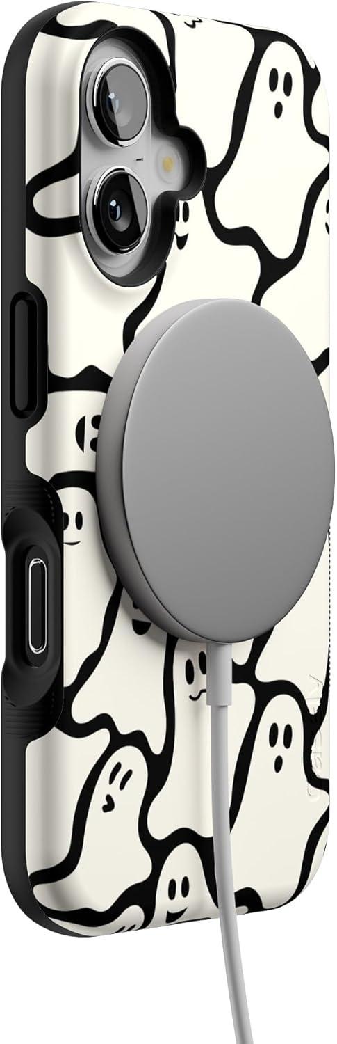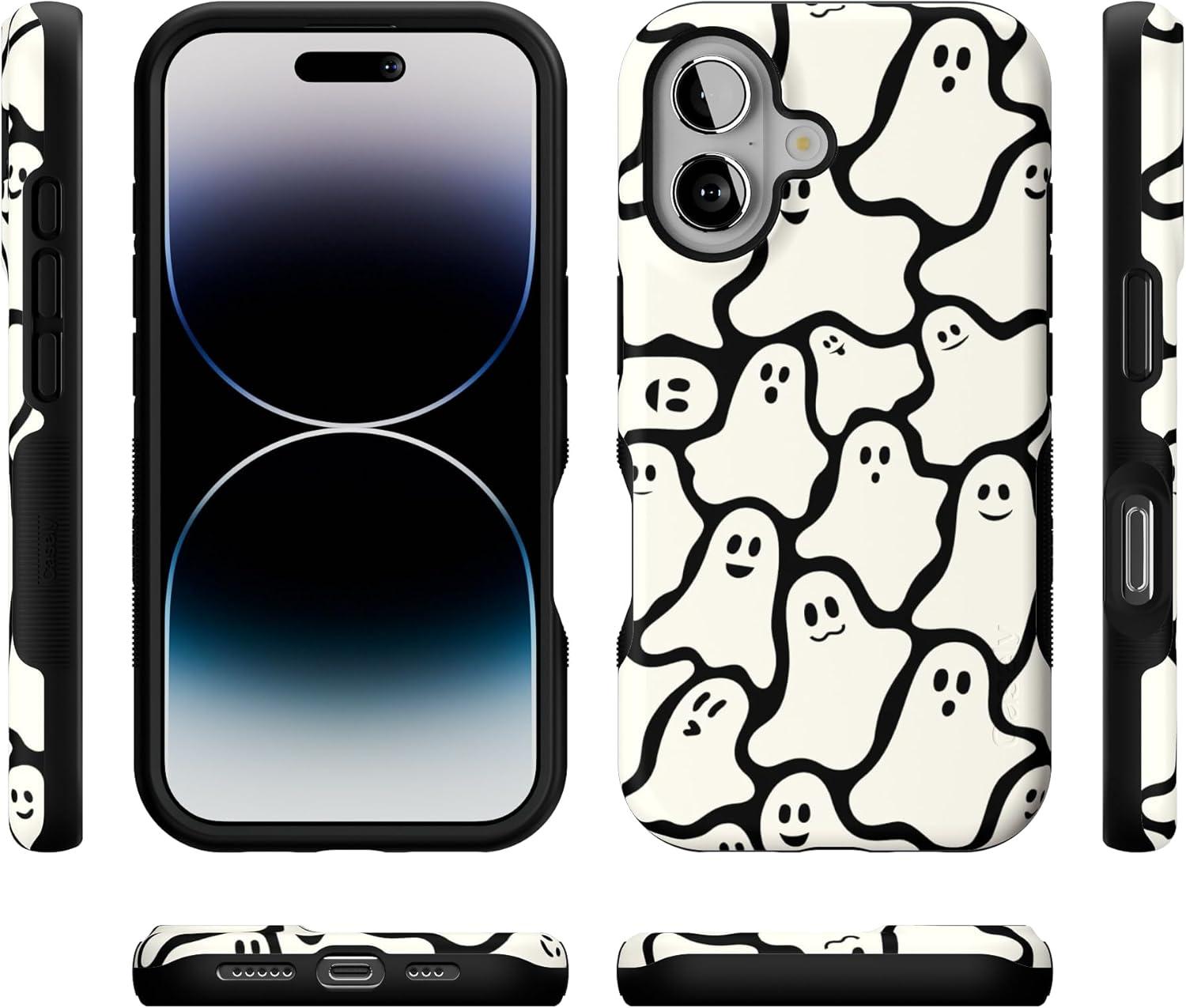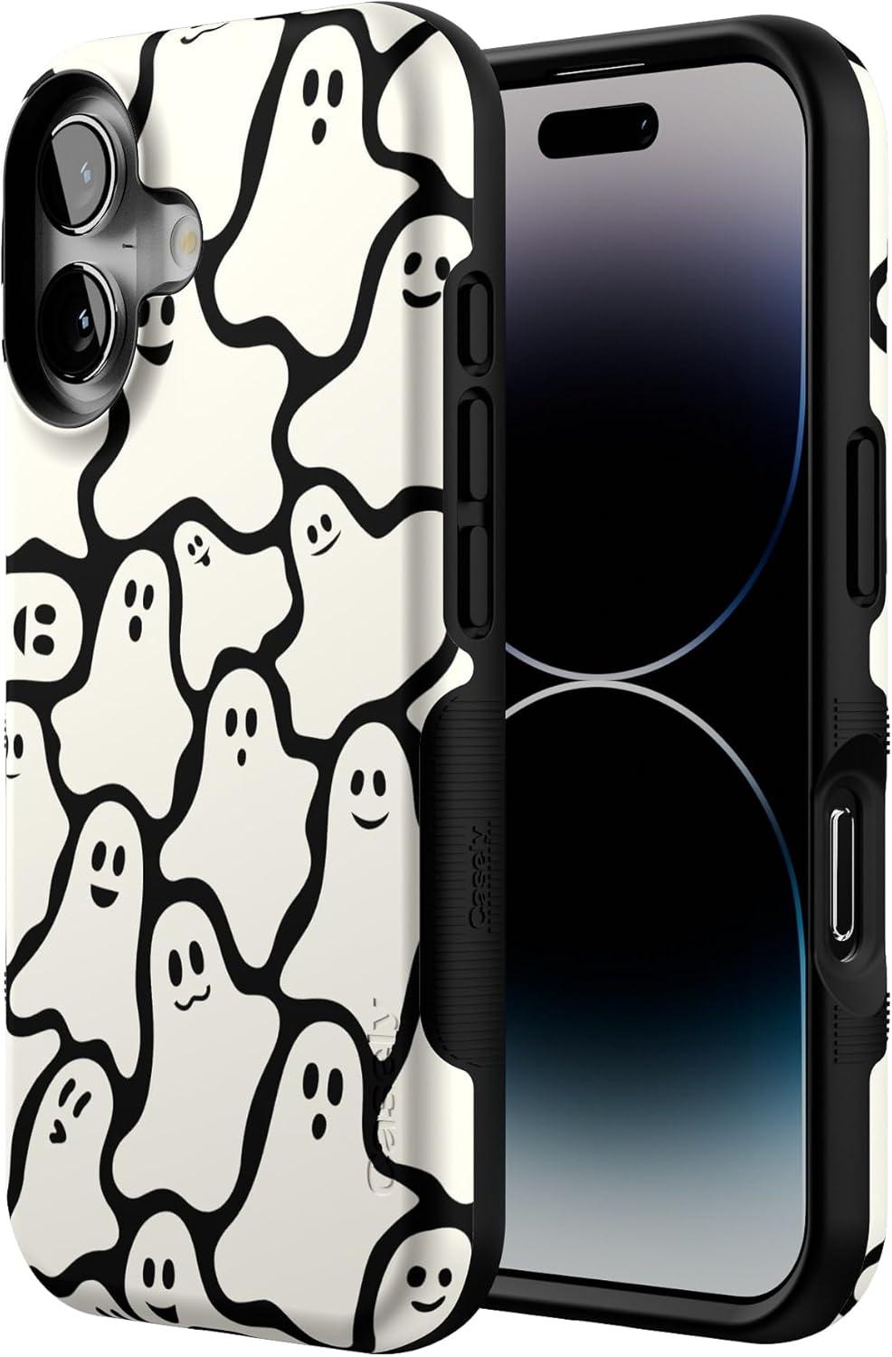 Casely iPhone 16 Case | All Smiles | Smiley Face Sticker | Bold Protective Design | MagSafe Compatible Design(Don’t Ghost Me | Halloween)