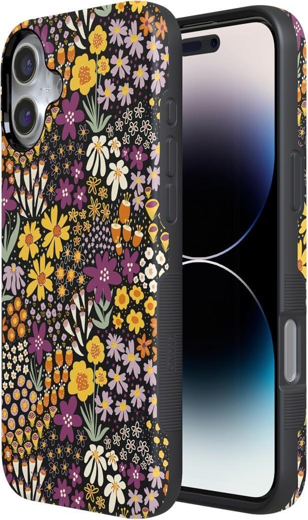 Casely iPhone 16 Case | All Smiles | Smiley Face Sticker | Bold Protective Design | MagSafe Compatible Design(Falling for You | Plum Floral)