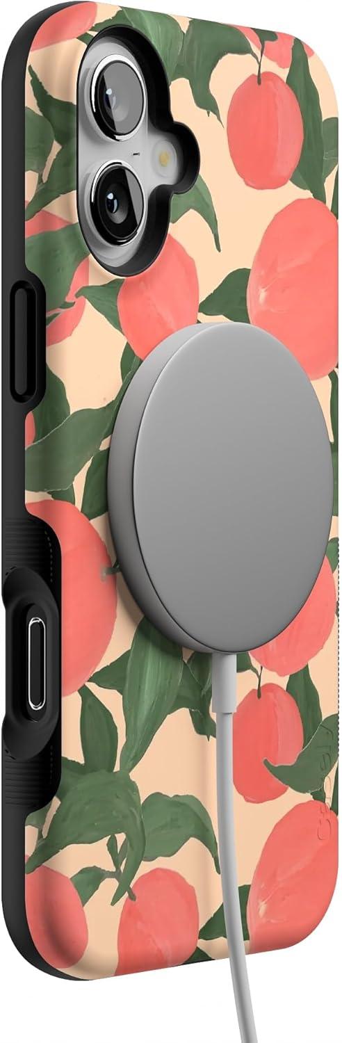 Casely iPhone 16 Case | All Smiles | Smiley Face Sticker | Bold Protective Design | MagSafe Compatible Design(Feeling Peachy | Blush Vines)