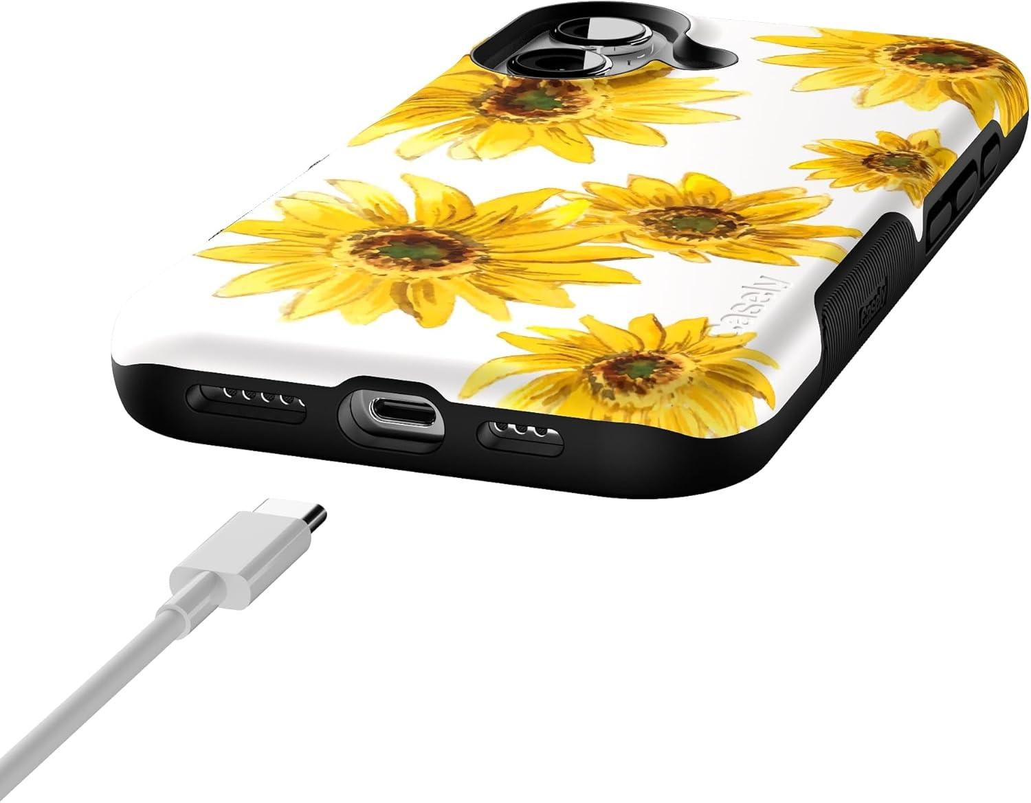 Casely iPhone 16 Case | All Smiles | Smiley Face Sticker | Bold Protective Design | MagSafe Compatible Design(Golden Garden | Yellow Sunflower Floral)