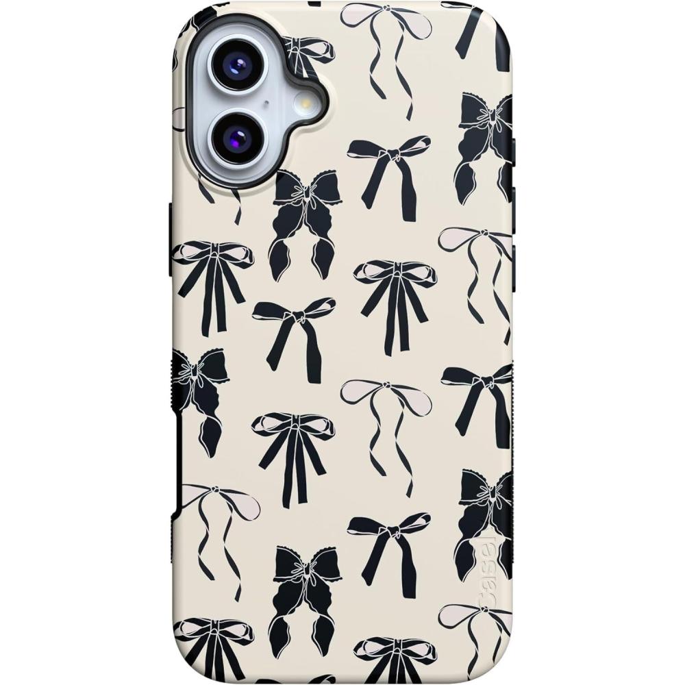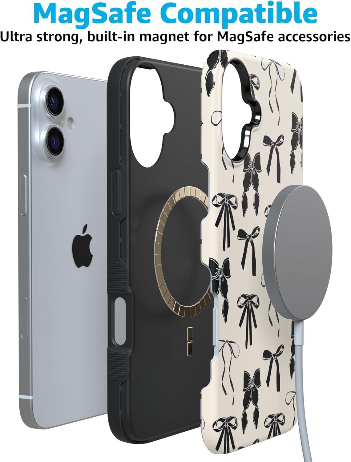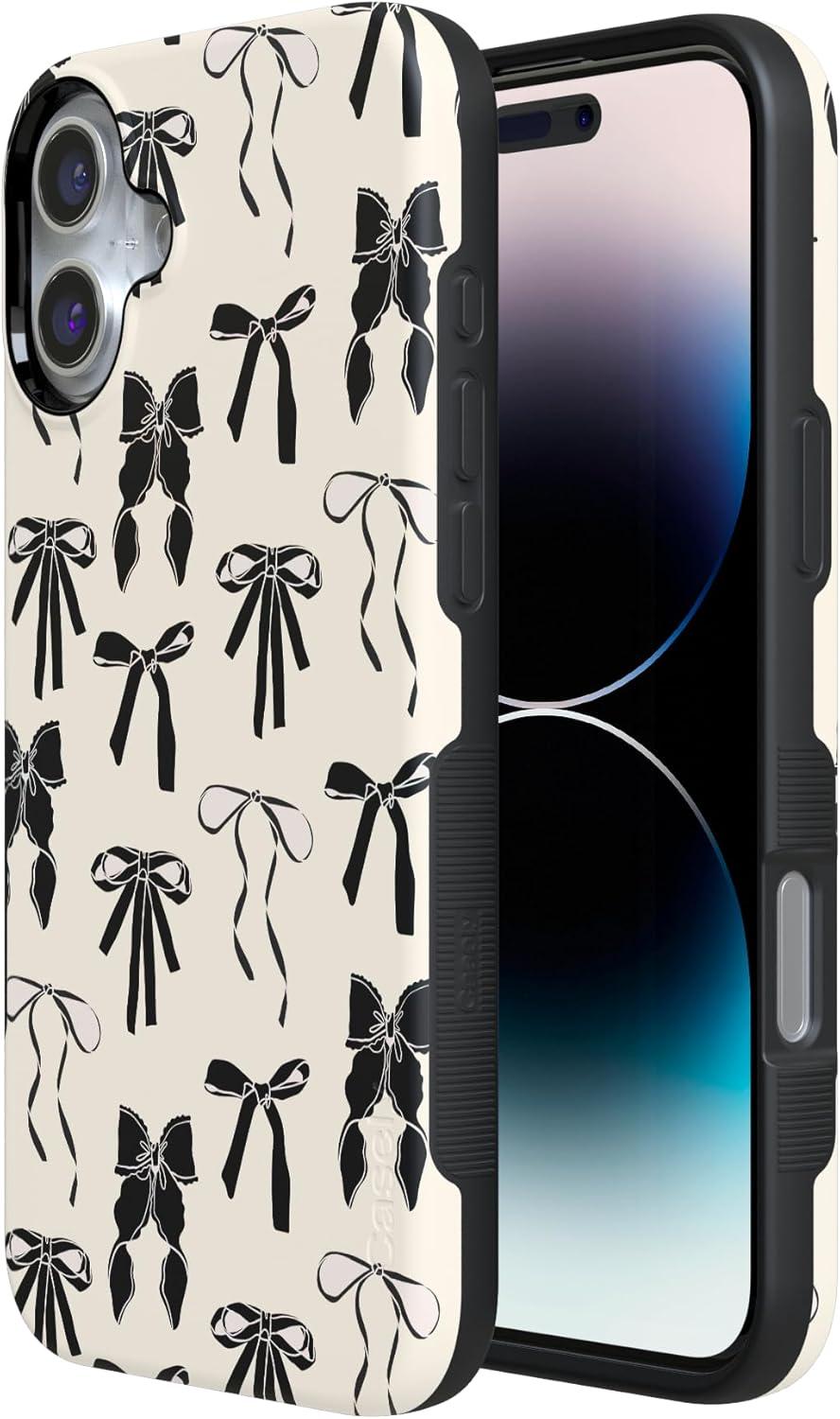 Casely iPhone 16 Case | All Smiles | Smiley Face Sticker | Bold Protective Design | MagSafe Compatible Design(Goth Girlie | Black Bows)