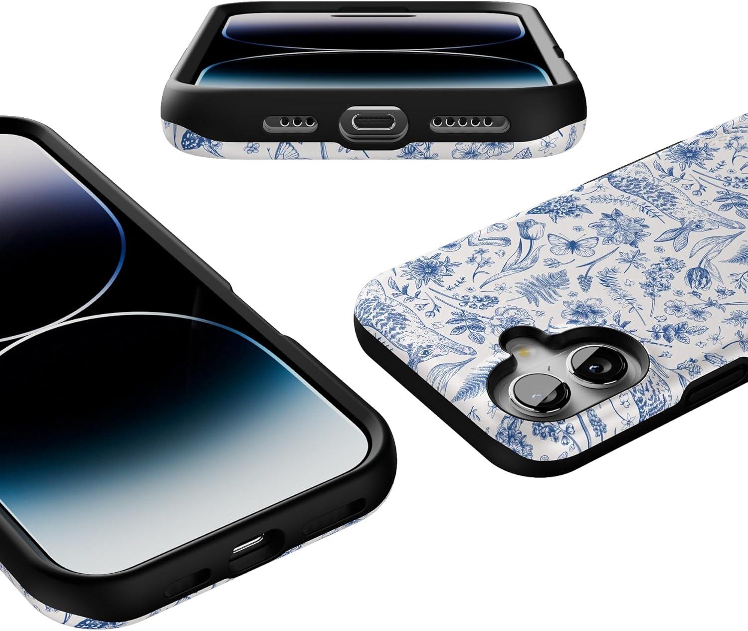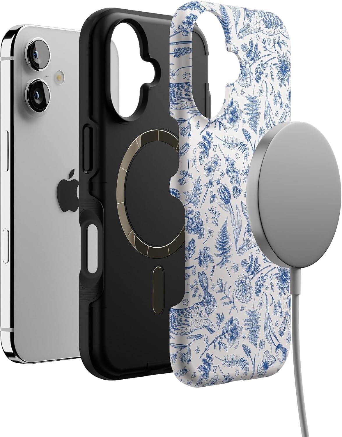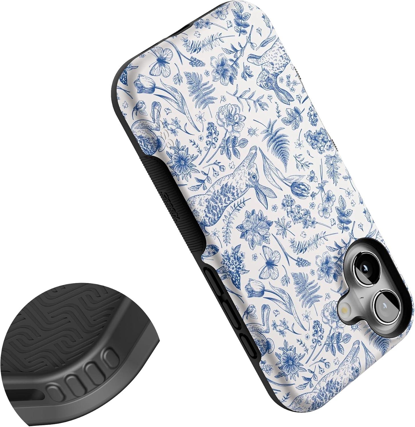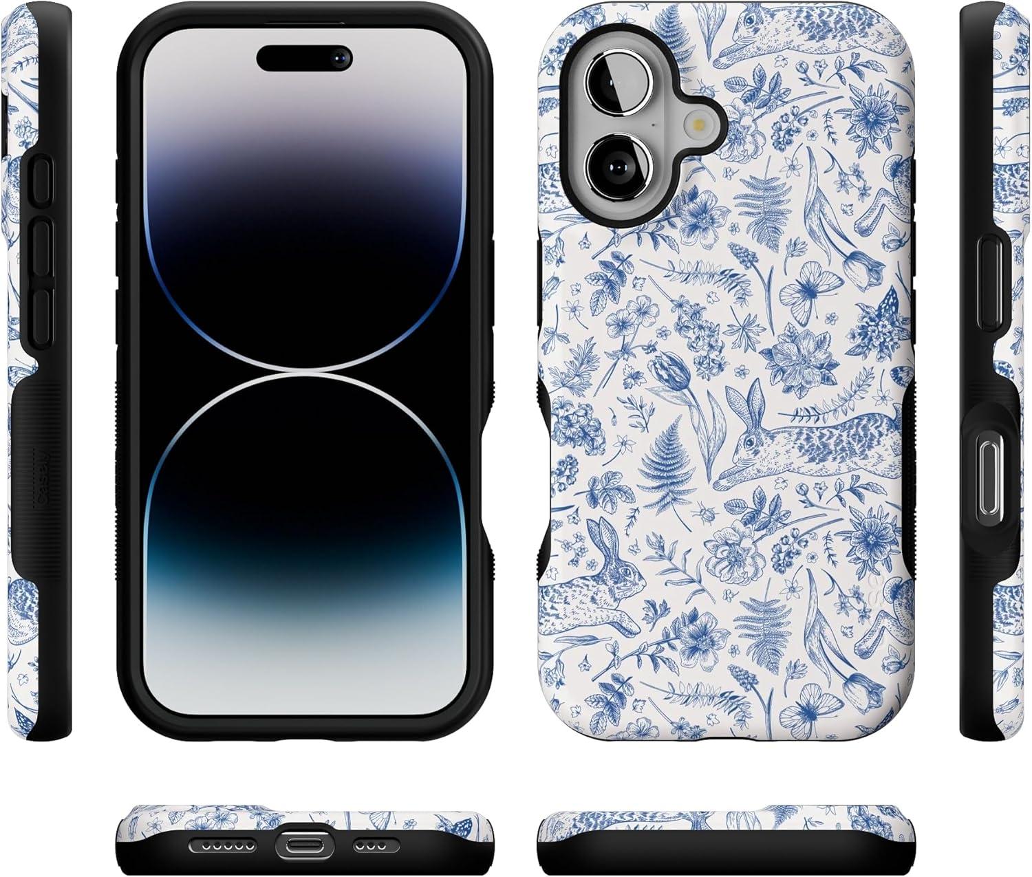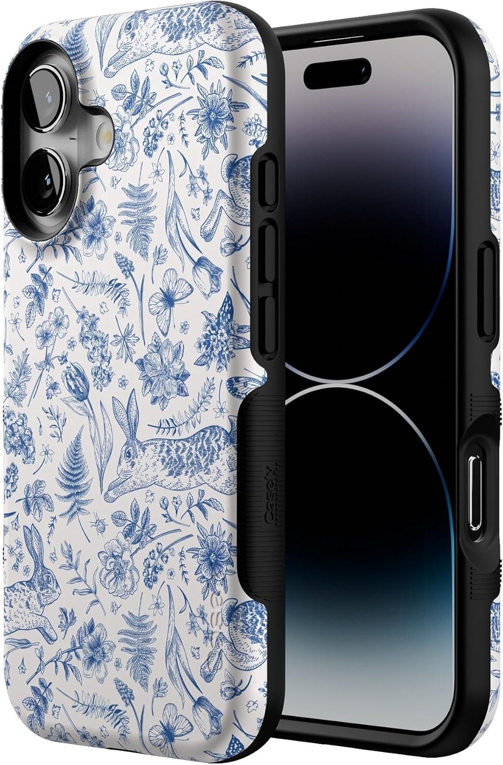 Casely iPhone 16 Case | All Smiles | Smiley Face Sticker | Bold Protective Design | MagSafe Compatible Design(Hop & Bloom | Bunny Toile)