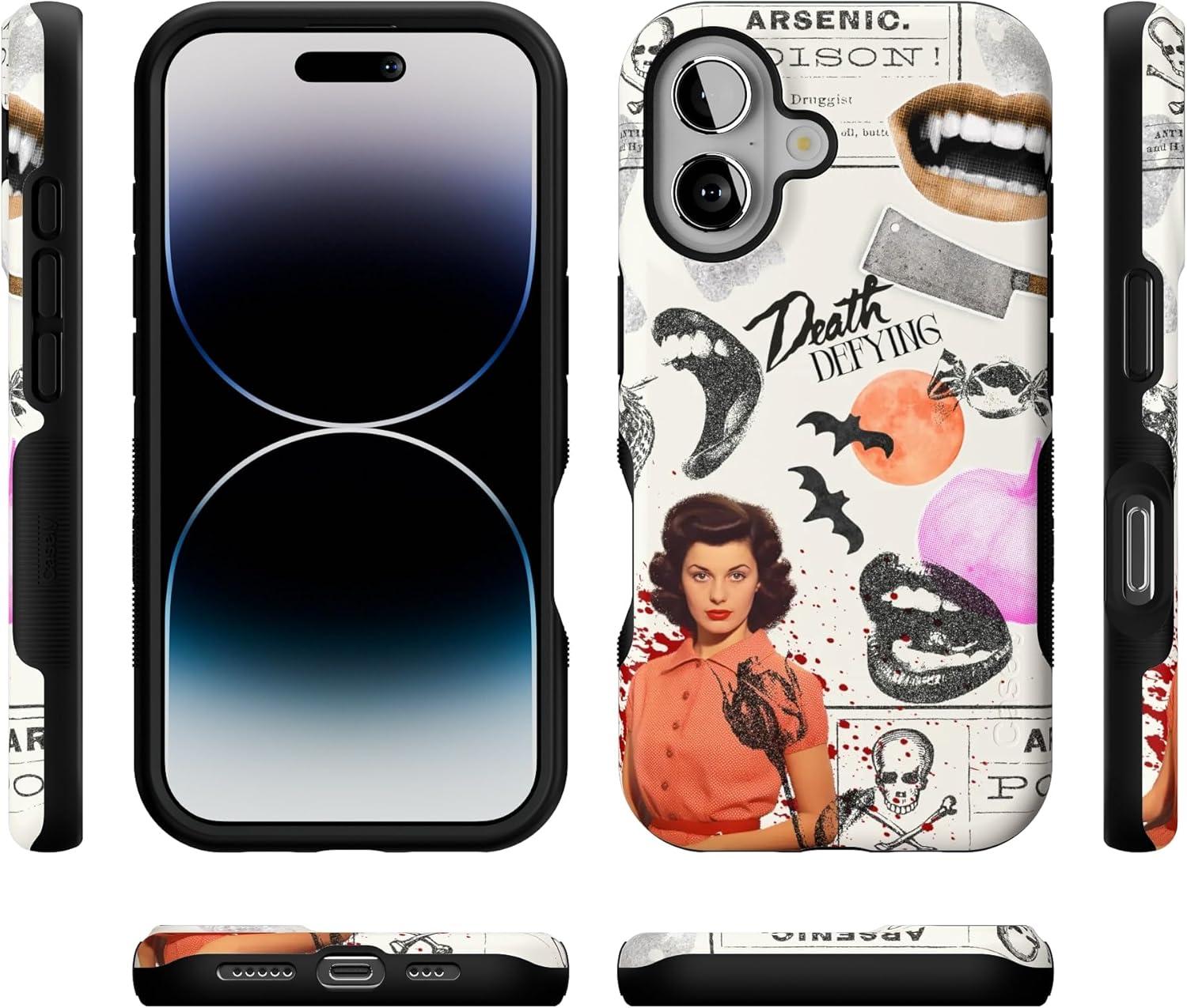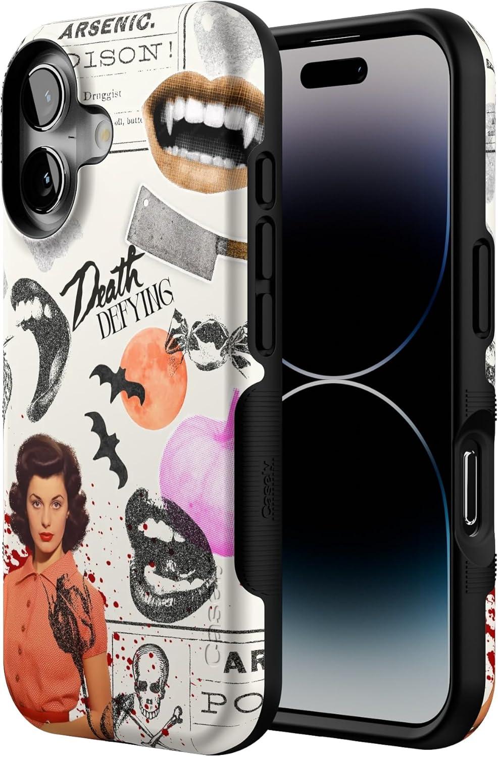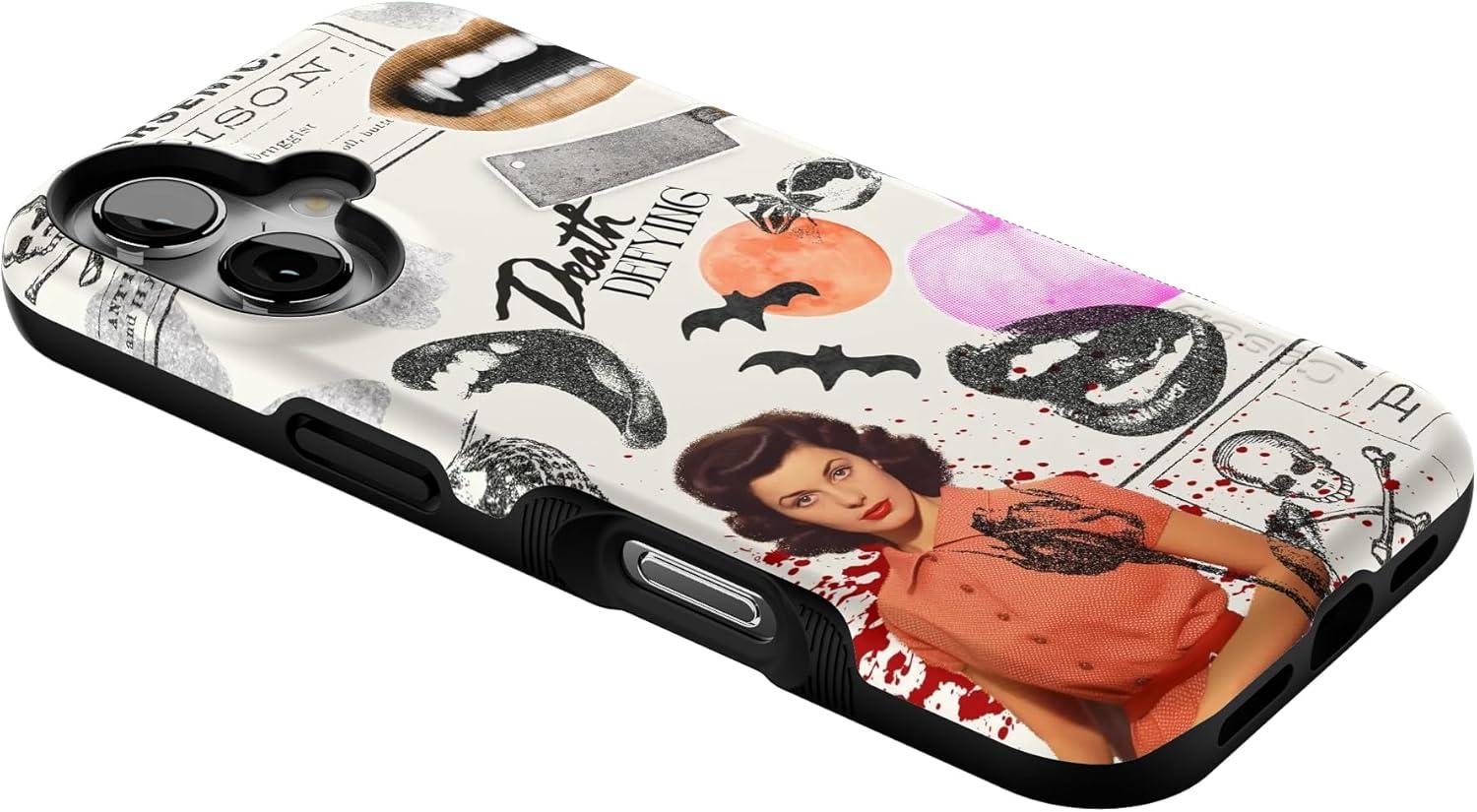 Casely iPhone 16 Case | All Smiles | Smiley Face Sticker | Bold Protective Design | MagSafe Compatible Design(If You Dare | Horror Collage)