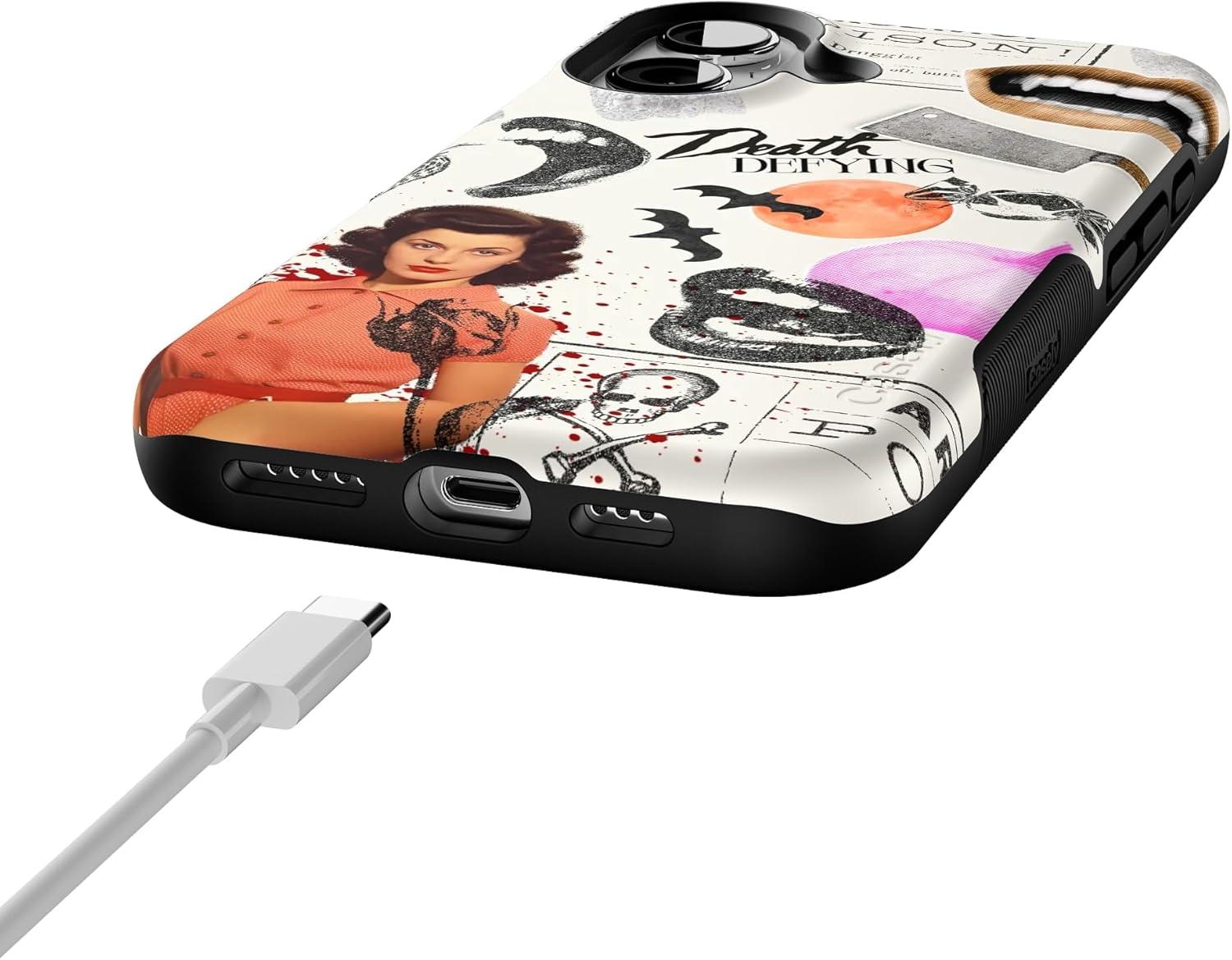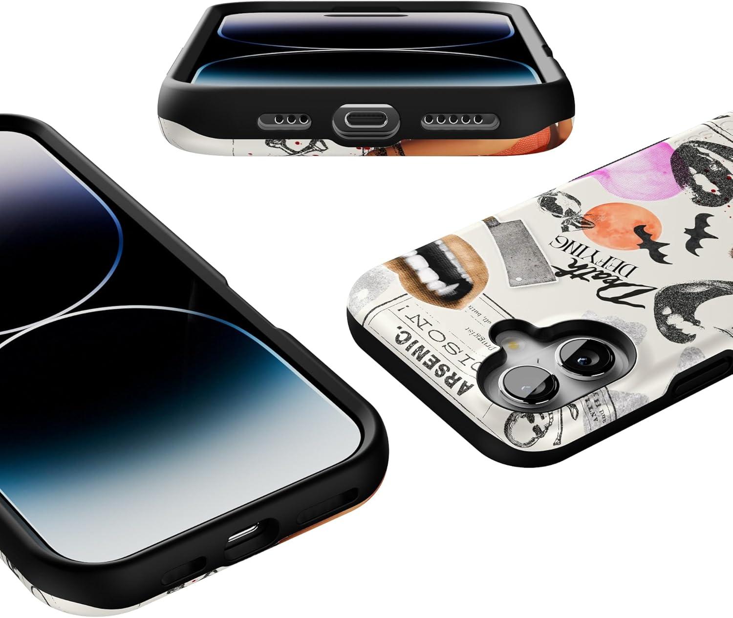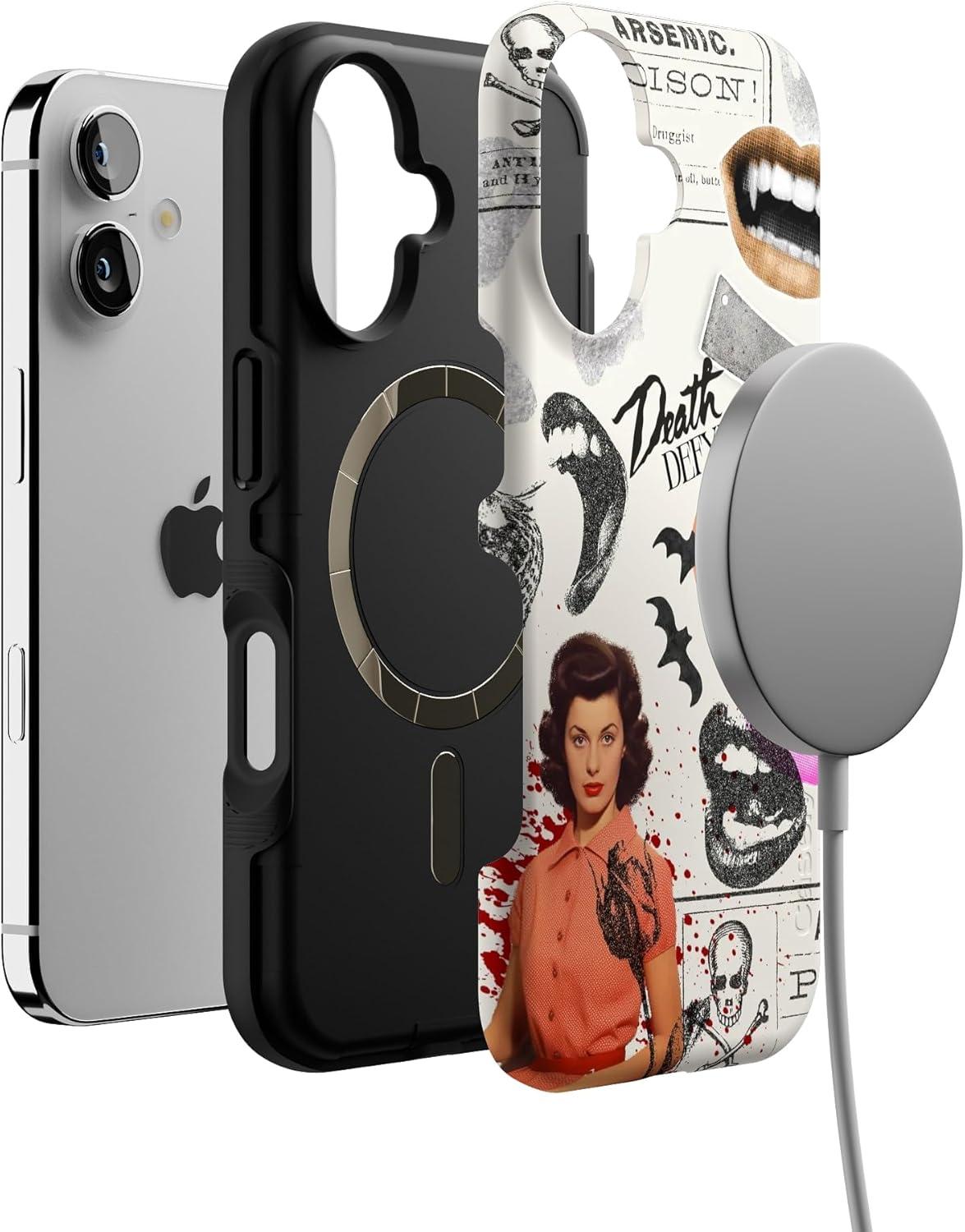 Casely iPhone 16 Case | All Smiles | Smiley Face Sticker | Bold Protective Design | MagSafe Compatible Design(If You Dare | Horror Collage)