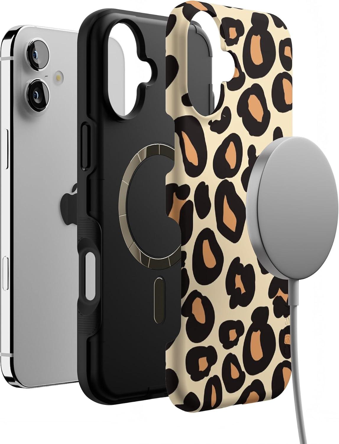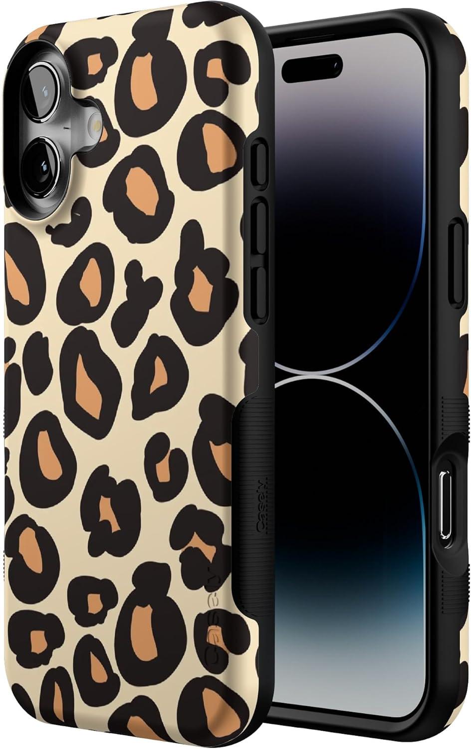 Casely iPhone 16 Case | All Smiles | Smiley Face Sticker | Bold Protective Design | MagSafe Compatible Design(Into the Wild | Leopard Print)