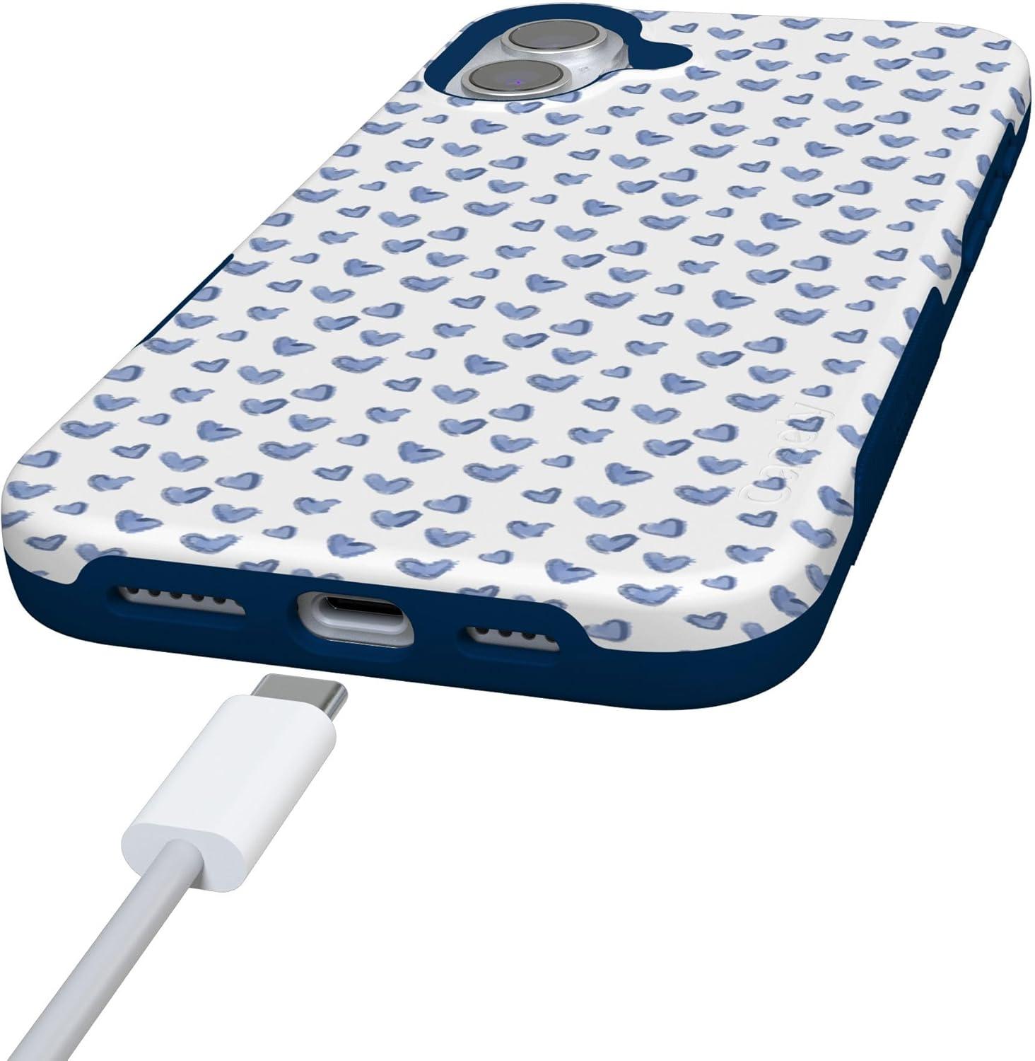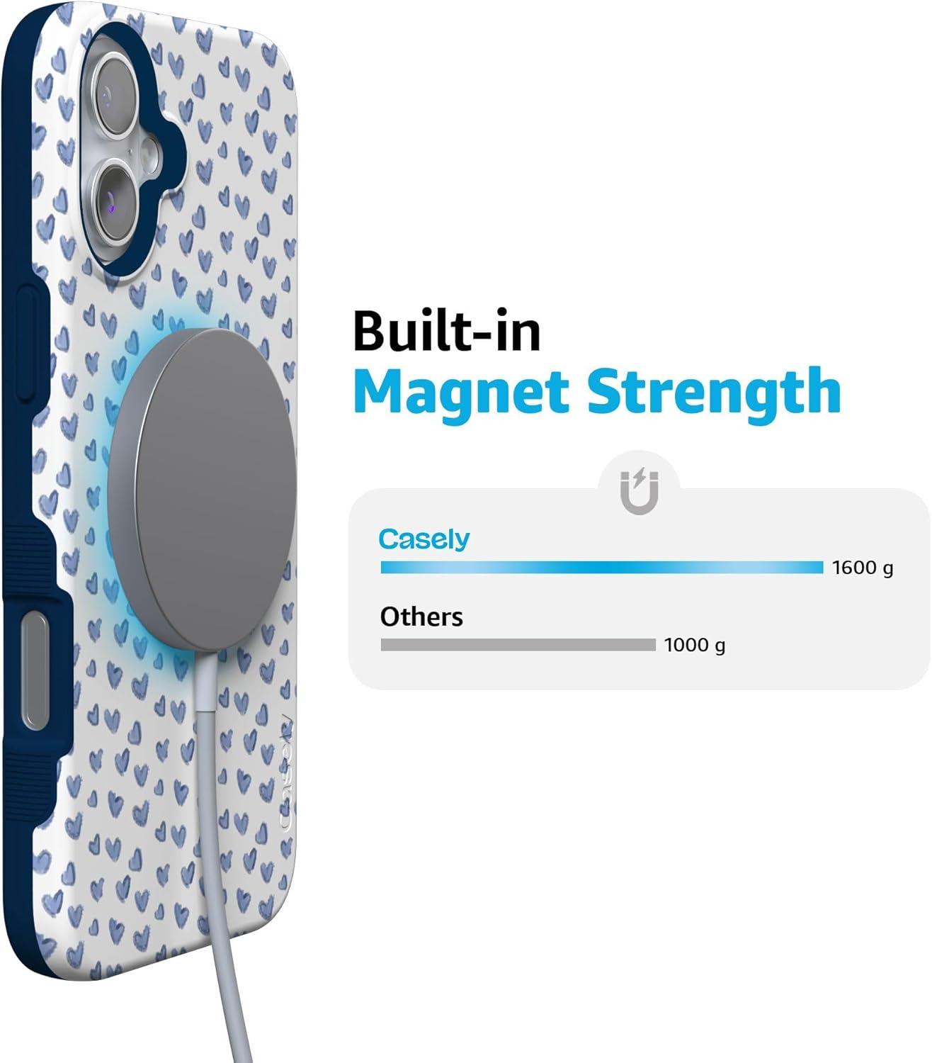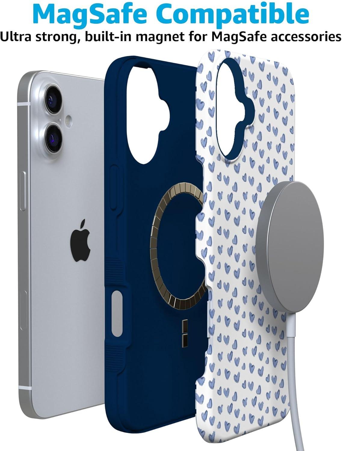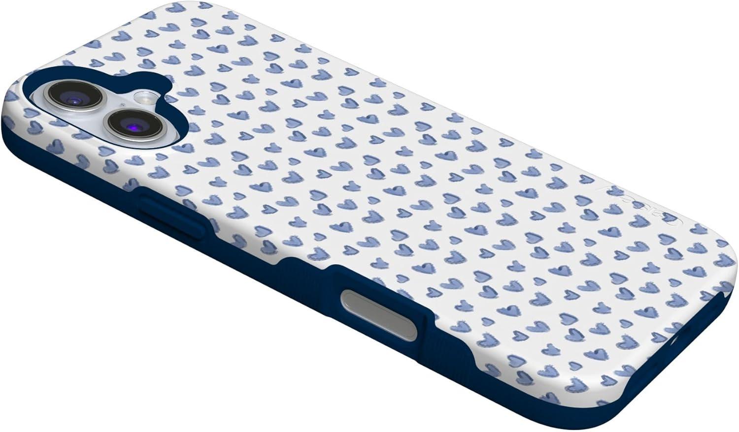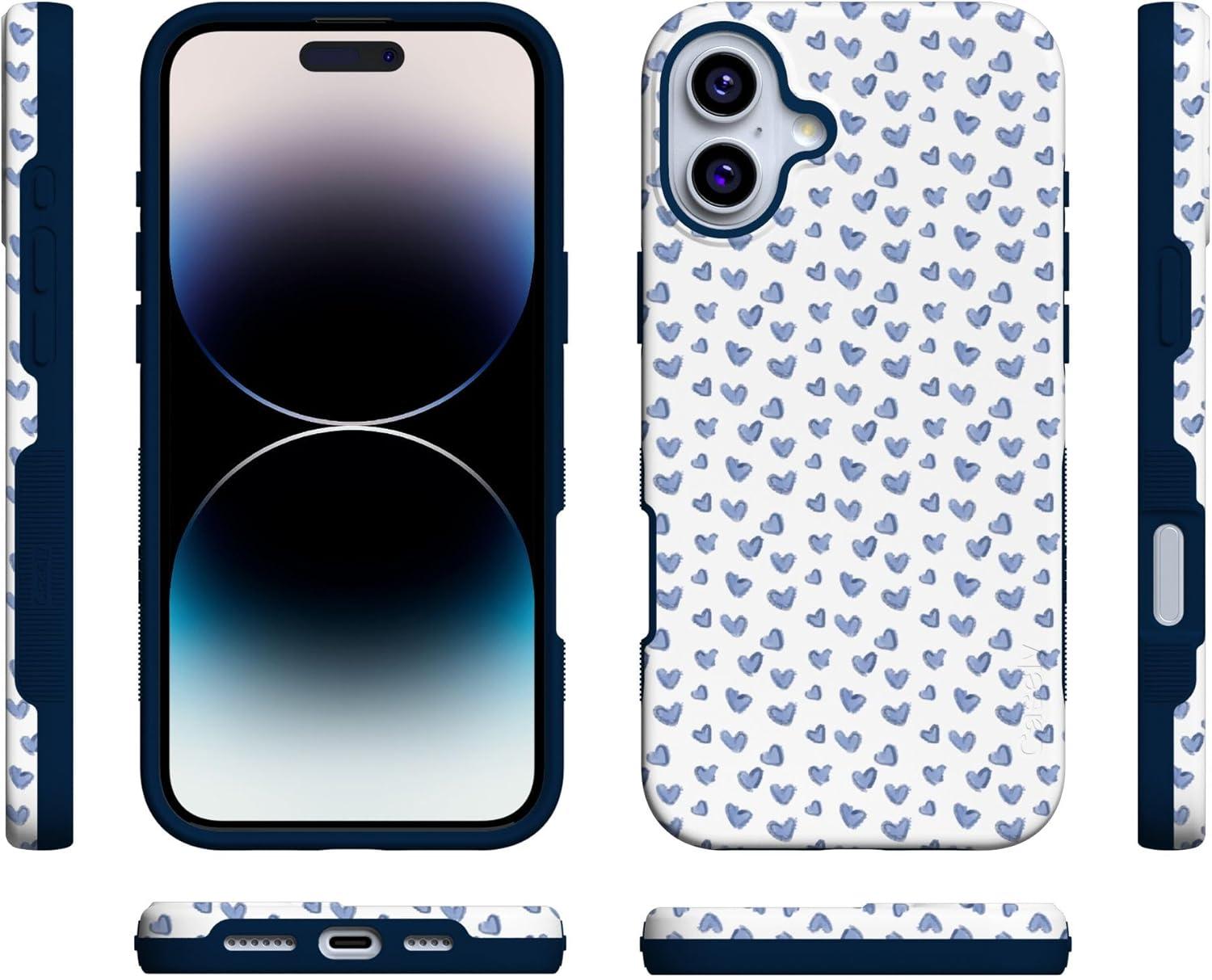 Casely iPhone 16 Case | All Smiles | Smiley Face Sticker | Bold Protective Design | MagSafe Compatible Design(Lovebug | Blue Hearts)